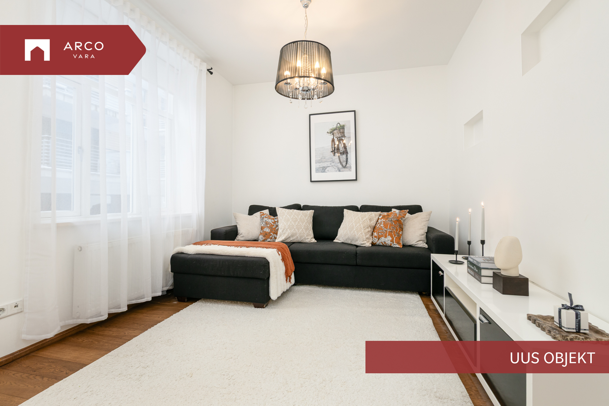 Kahel korrusel asuv korter on loodud hoole ja armastusega. Iga detail on läbimõeldud ning harmooniliselt sobitatud, et pakkuda tõelist kodutunnet.