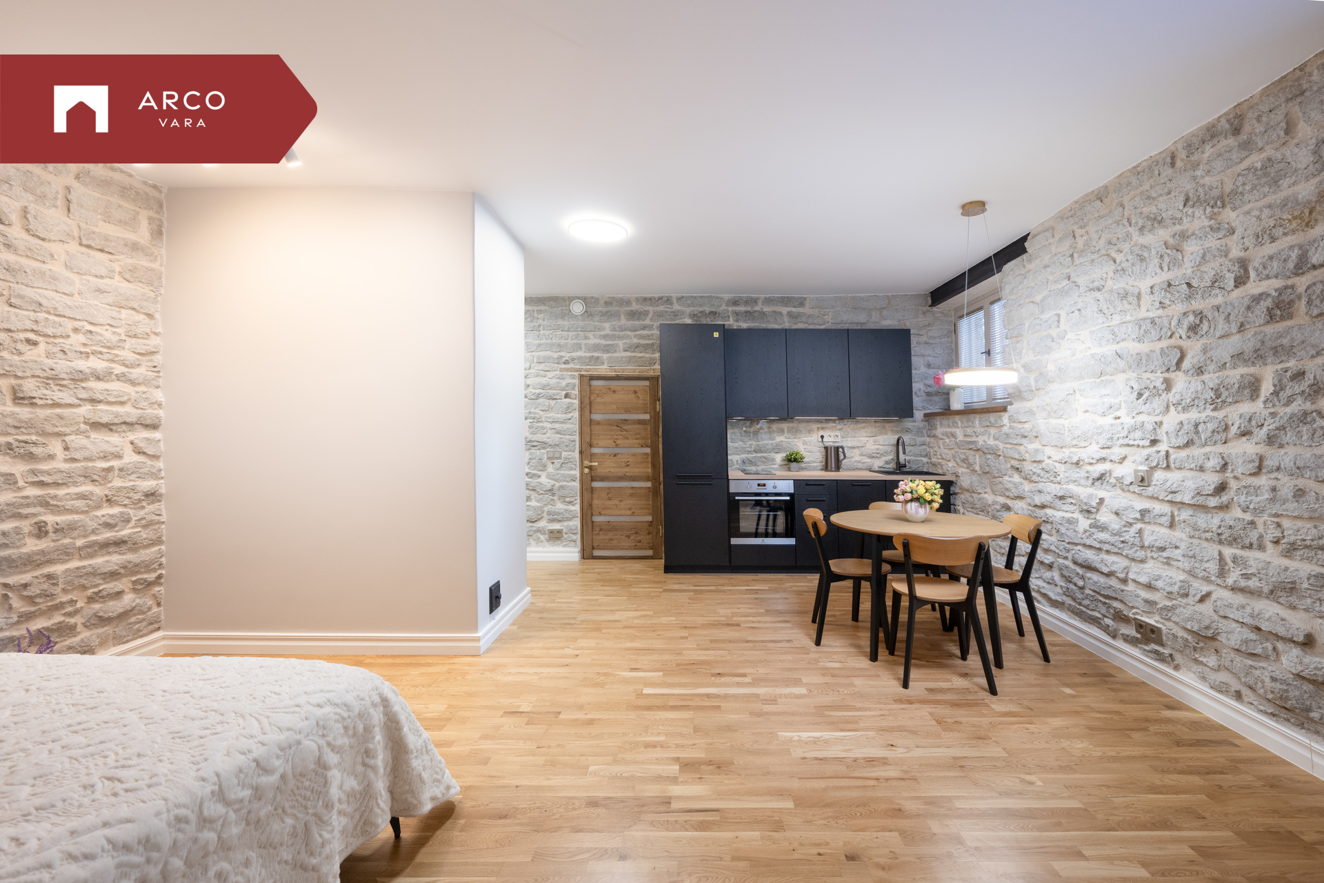 Avara planeeringuga ja kõrgete lagedega soklikorruse stuudiokorter on põhjalikult renoveeritud 2025 aasta lõpus. Ehitatud uued põrandad, paigaldatud uus torustik ja elektrisüsteem. Paigaldatud reguleeritav põrandaküte tsentraalse kaugkütte baasil ja korralik soojustagastusega ventilatsioonisüsteem, mis tagab hea sisekliima. Muinsuskaitse nõuetele vastavad kititud puitaknad (välimisel raamil üks klaas ja sisemisel 2x klaaspakett) ning tulekindel turvauks. Paigaldatud uus kvaliteetne Noblessa köögimööbel koos tehnikaga (külmik, pliit, ahi söefiltriga kubu ja nõudepesumasin), muudetav LED valgus köögikappide all ning mööbli tagasein kaetud klaasiga. Põrandad kaetud naturaalse puitparketiga. Korterisse on võimalik lisaks paigaldada kamin, vaba lõõr korstnas olemas.