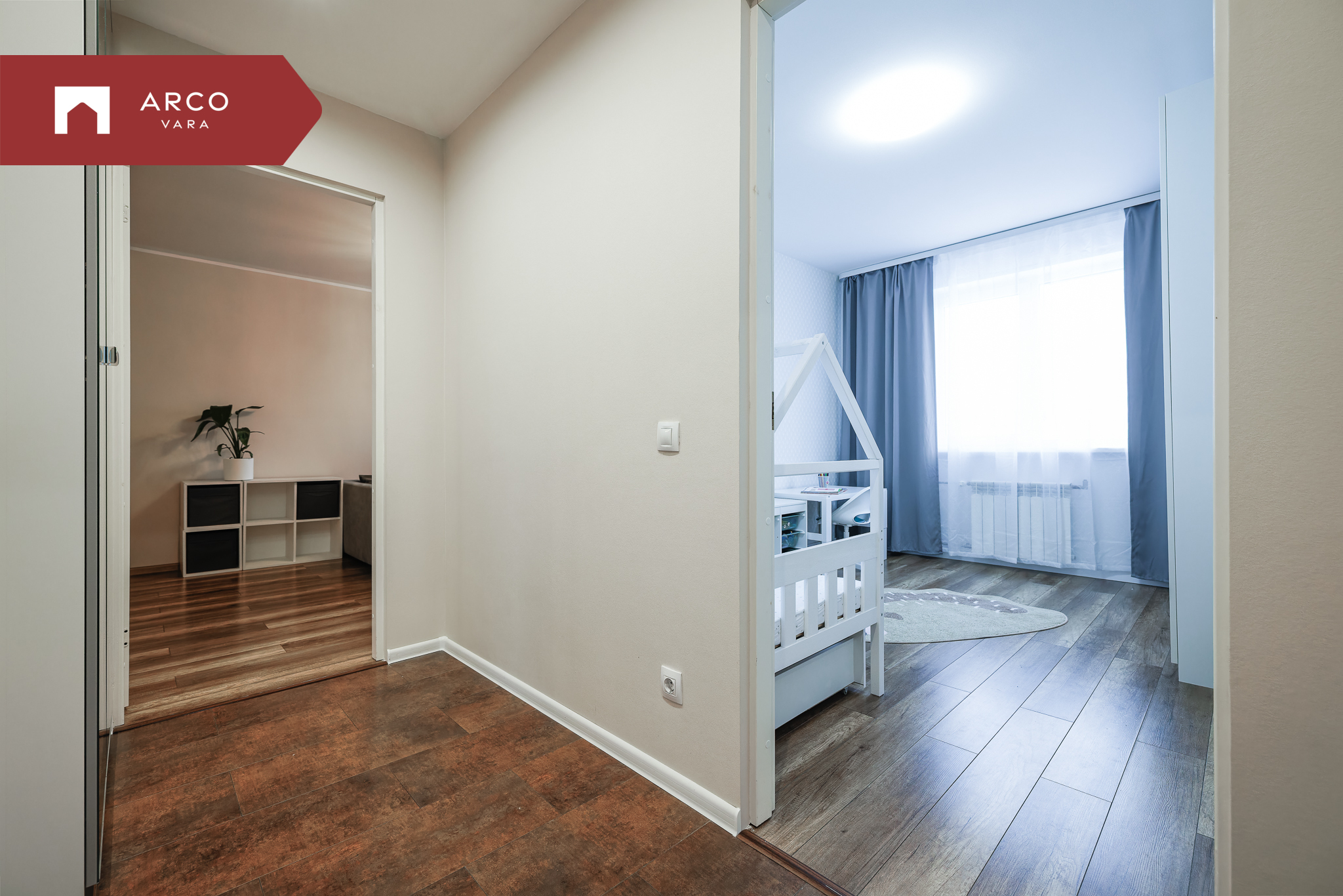 Korteri üldpind on 49,4 m² ning ruumilahendus on praktiline ja funktsionaalne: esik, eraldiseisev köök, vannituba/wc, elutuba pääsuga rõdule ning lastetuba/magamistuba.