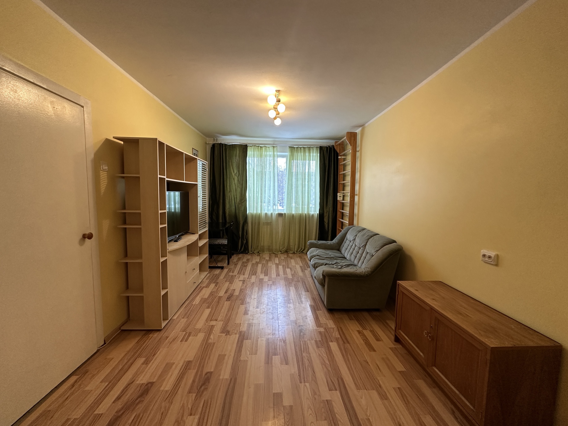 Korterisse jäävad kõik piltidel olevad mööbliesemed ja tehnika. Elutoas lahtikäiv diivan-voodi, lauake, sektsioon, TV koos kapikesega. Köögis on laud toolidega, külmkapp, kubu, elektripliit ja köögikapid. Seisukord vastab piltidele. Radiaatoritel mõõdikud.