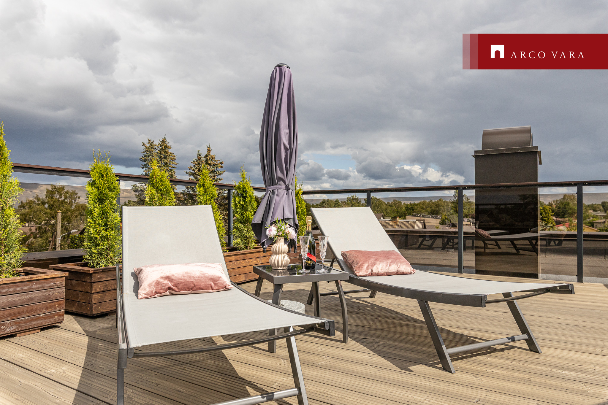 Kõikidest magamistubadest on pääs rõdule ning lisaks on võimalus päikesepaistel lõõgastuda 50 m2 suurusel katuseterrassil.