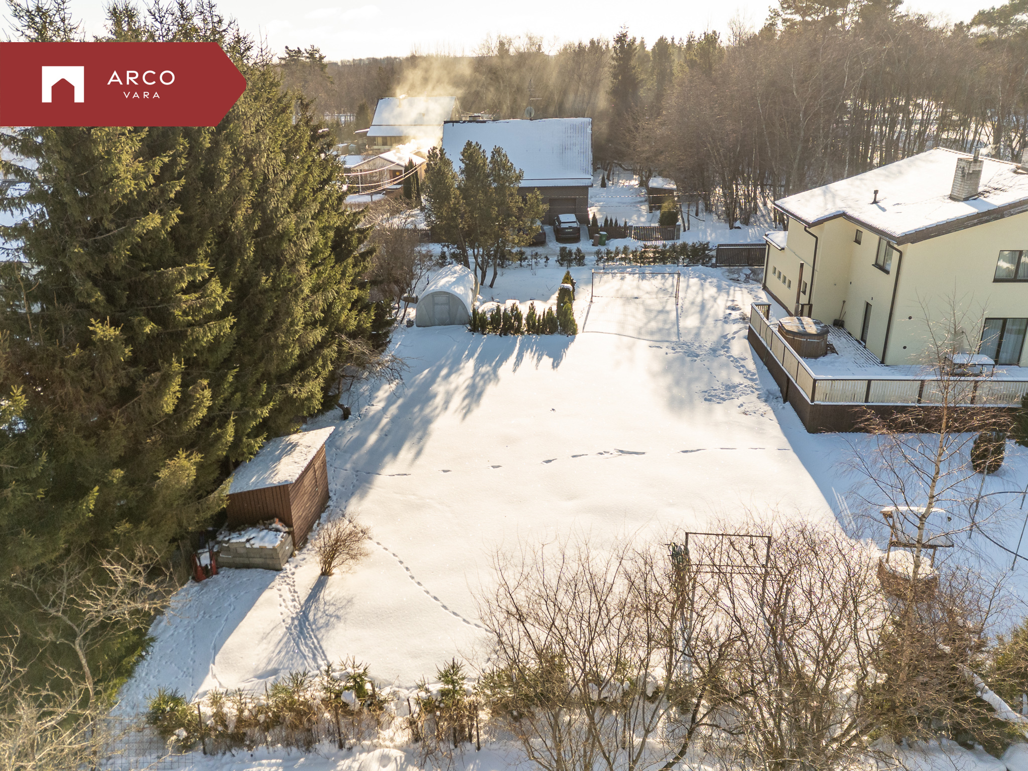 По границе участка проходят подключения к центральной воде и канализации. Уже заложен контур для геотермального отопления — практичное решение для современного энергоэффективного дома.