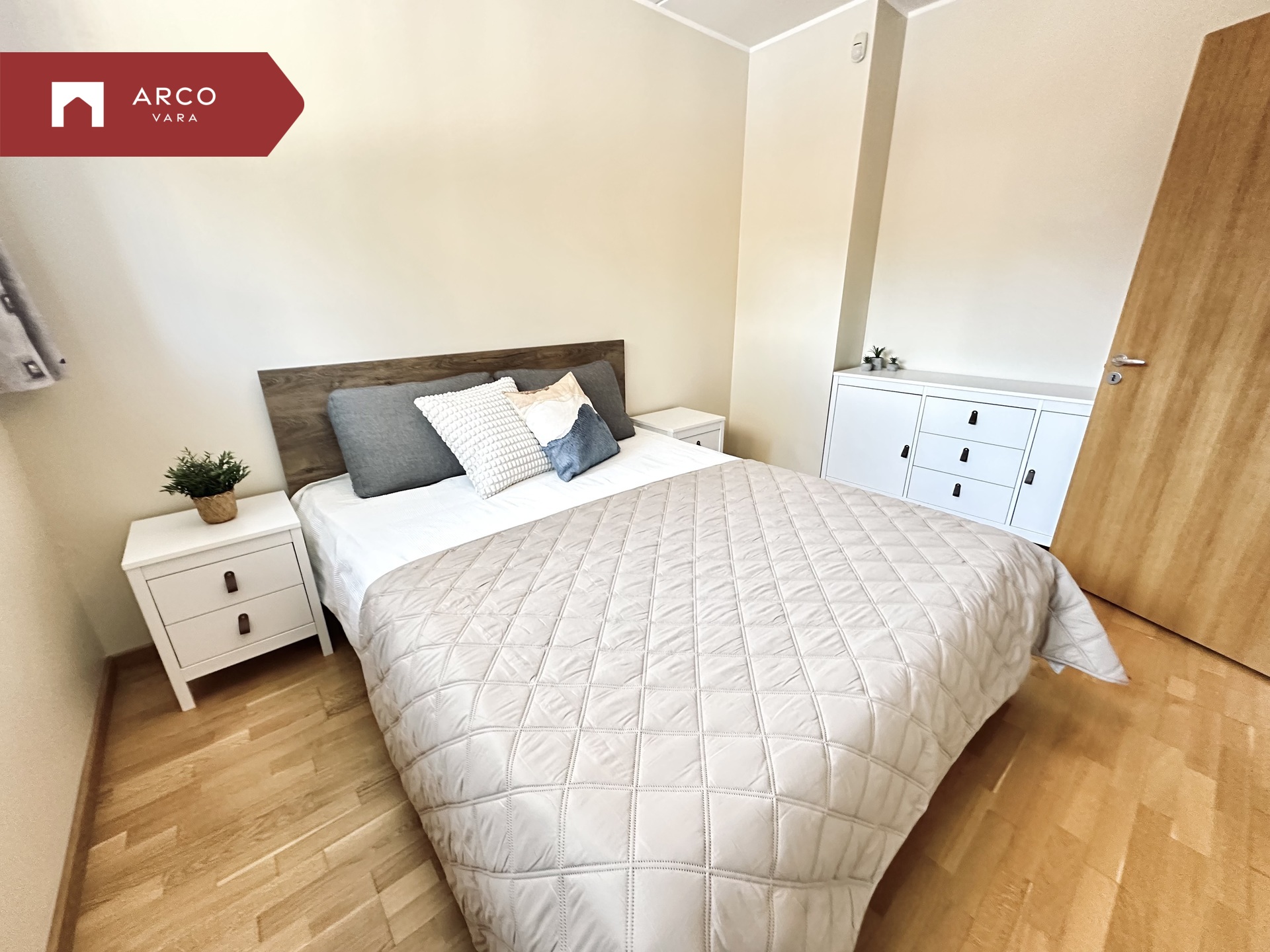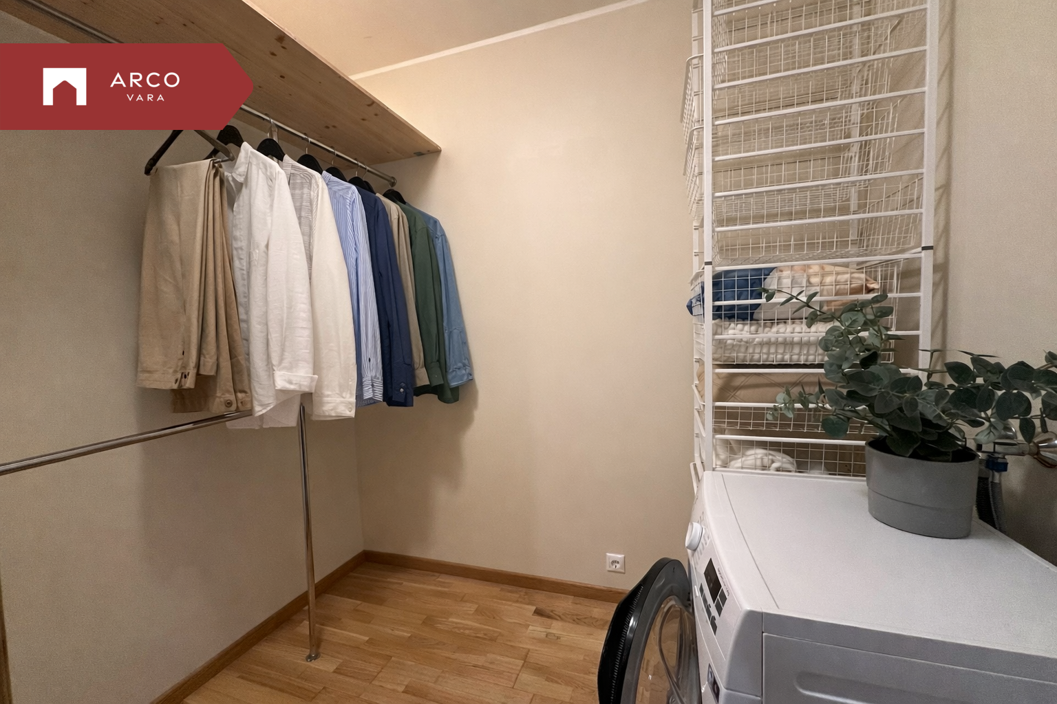 Korter on väga avar ja läbimõeldud planeeringuga. Avatud köök on ühendatud elutoaga, mille kõrval paikneb ruumikas walk-in garderoob ning vannituba mullivanniga. Korteri sissepääsu juures asub avar esik ning magamistuba paikneb eraldi, pakkudes rohkem privaatsust. Planeering on mugav ja sobib suurepäraselt igapäevaseks elamiseks. Siseviimistluses on kasutatud heledaid toone, seinad on värvitud ning põrandaid katab kvaliteetne parkett.