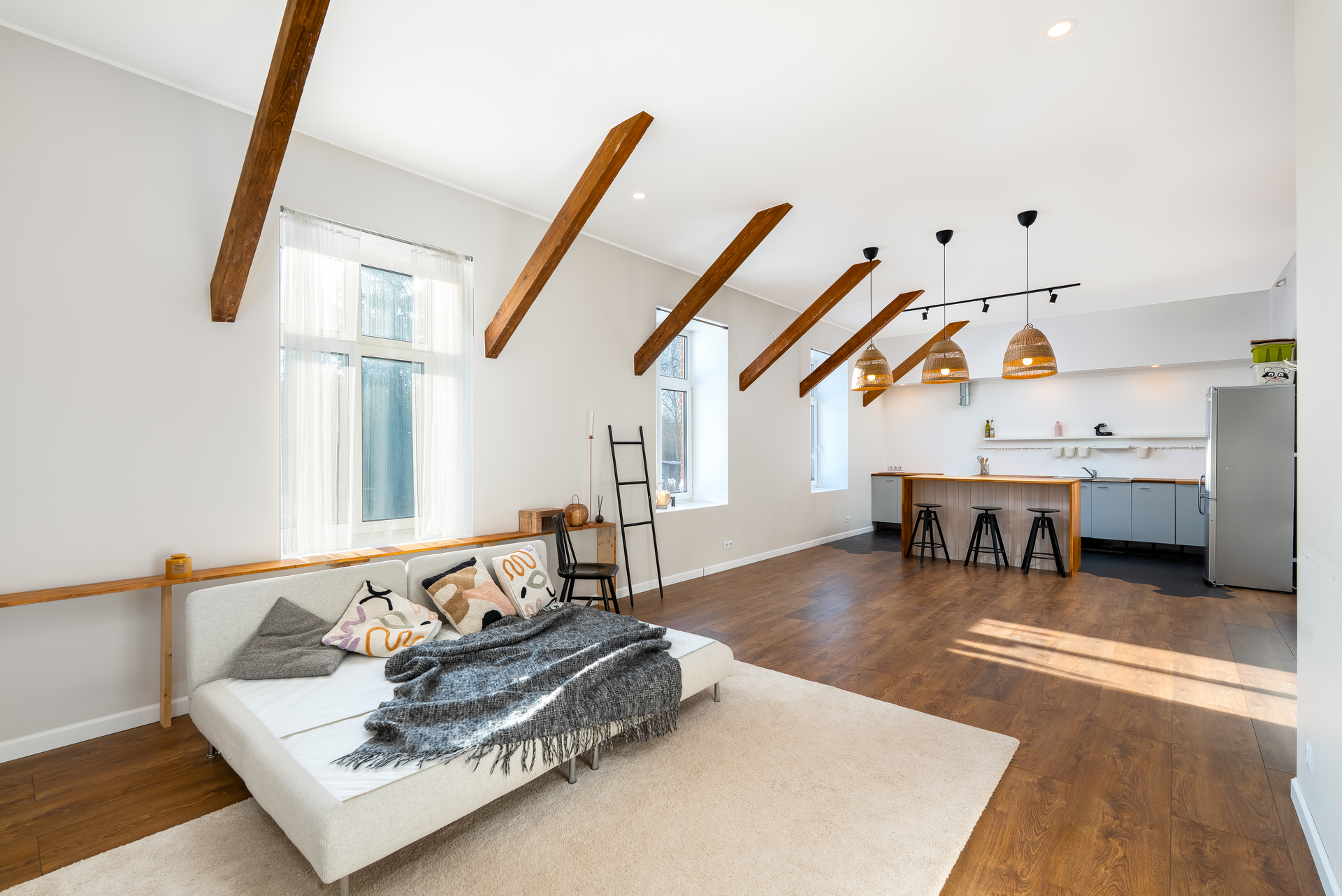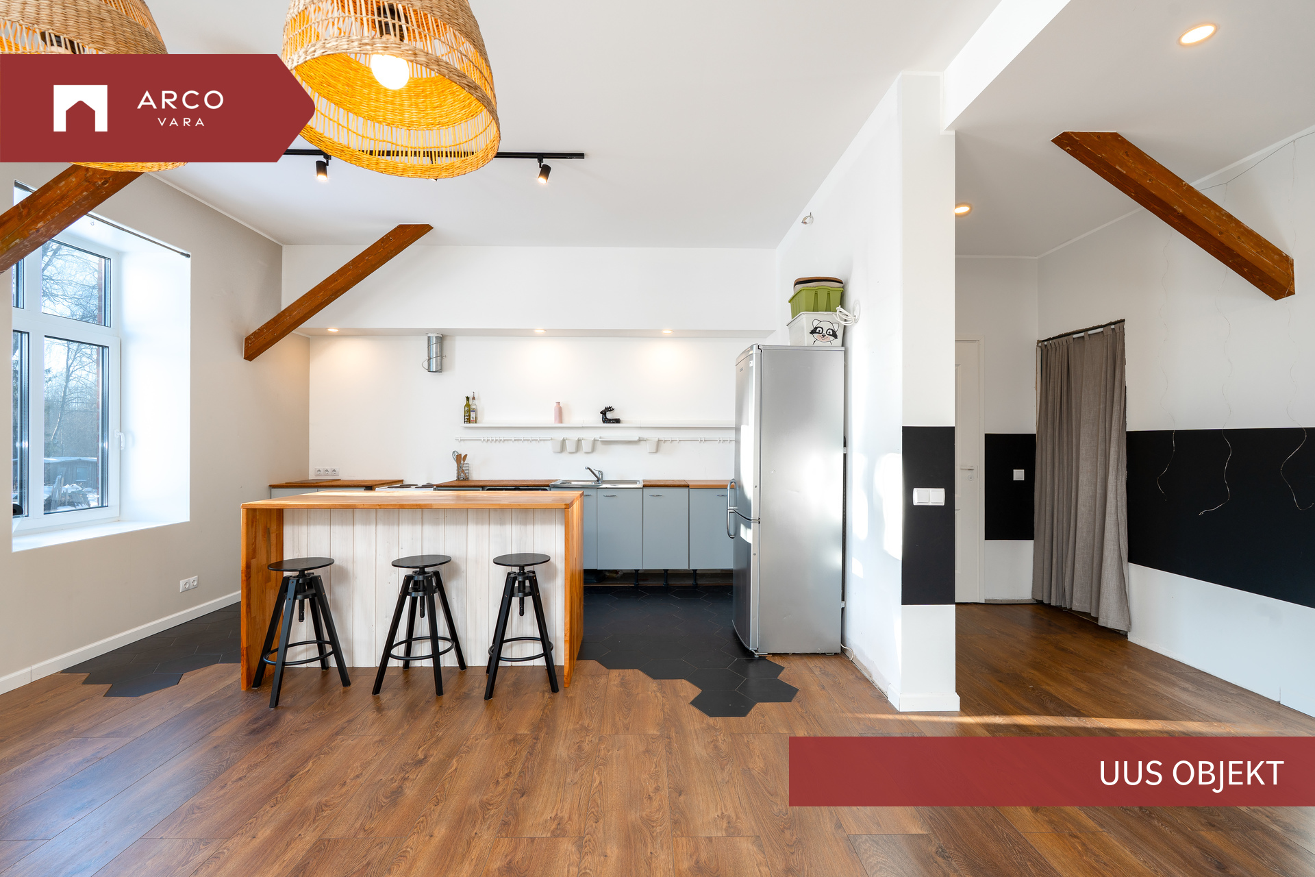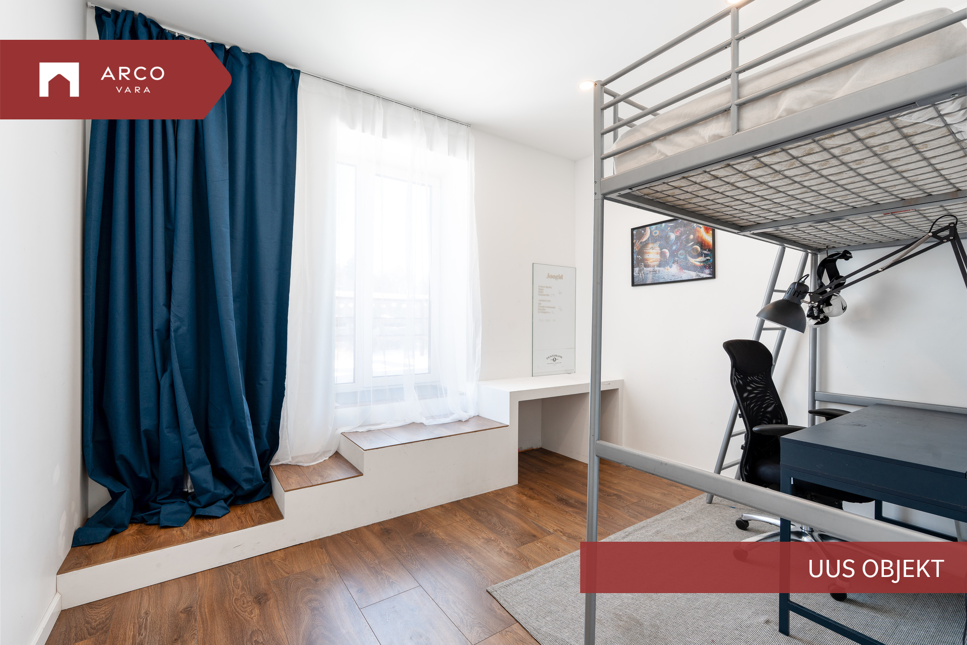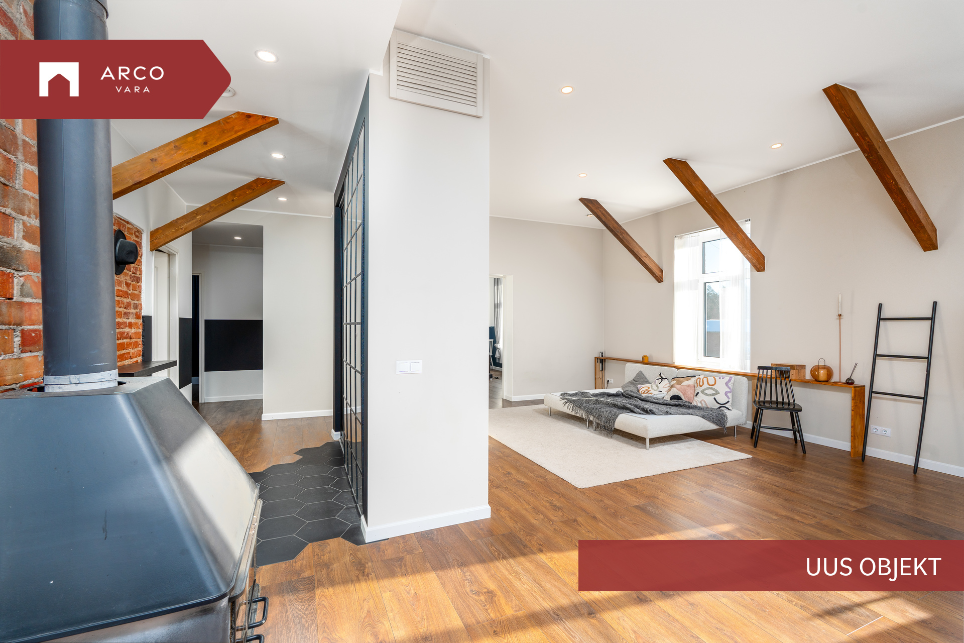 Korter on läbinud hiljaaegu põhjaliku uuenduskuuri, mida kuulutuse fotod kinnitavad, vaid üks neljast magamistoast on veel remondi ootel ja sellest ka pilti seetõttu ei ole lisatud. Planeering on suurepärane – läbi maja liikuv päikesevalgus loob hubase ja valgusküllase atmosfääri kogu päevaks. Korteri kasutuses oleva keldri kohale on nutikalt lahendatud terrass, kus hommikukohv üksinduses või koosolemine sõpradega saavad lemmikhetkedeks. Kõrged laed annavad ruumidele elegantsi, mida tänapäevastes linnakorterites harva kohtab. Kodusooja loob õhk-vesi-soojuspump põrandasisese küttetorustikuga ning lisaks elutoa kamin.