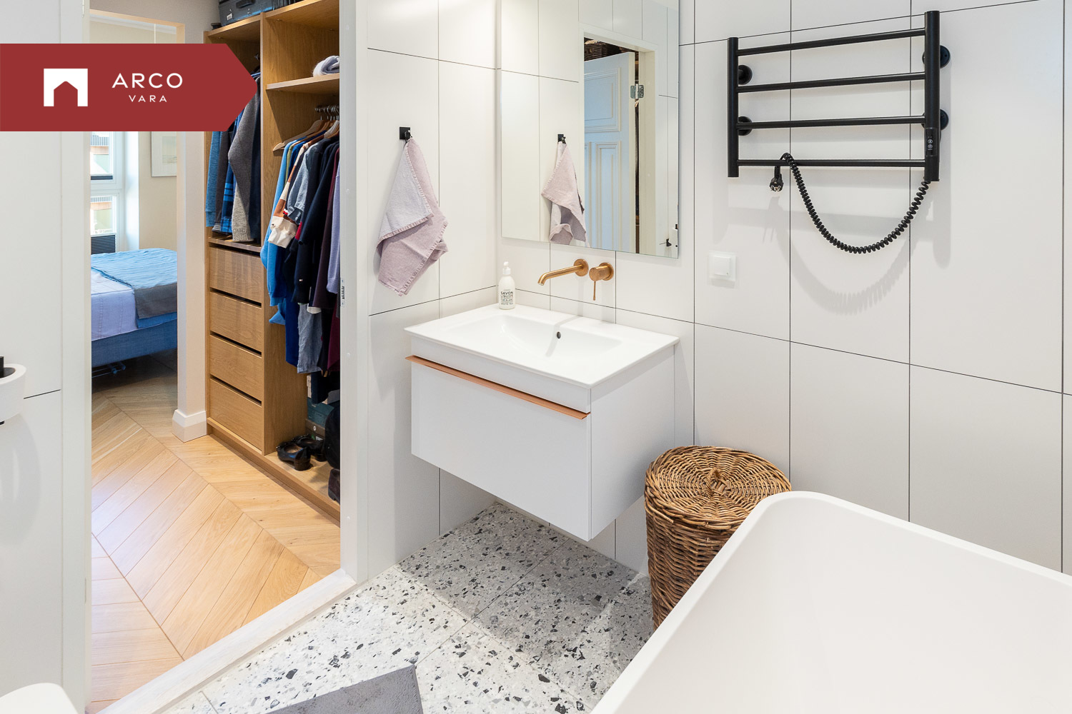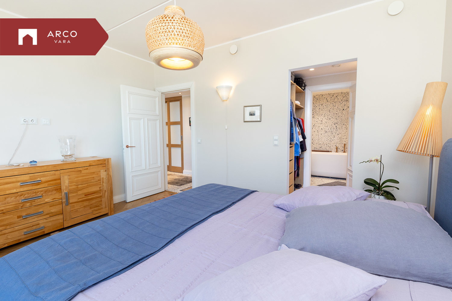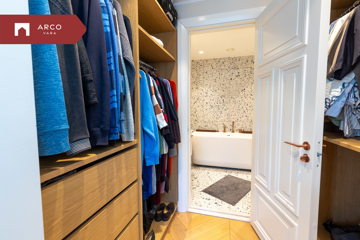 Korteri uksest sisenedes tervitab avar ja valgusküllane esik koos integreeritud garderoobiga. Otse ette jääb privaatne magamistuba, millel on luksuslik walk-in garderoob ja oma vannituba. Vannitoas ootab lõõgastumiseks vann ning aknast avaneb rahustav merevaade.