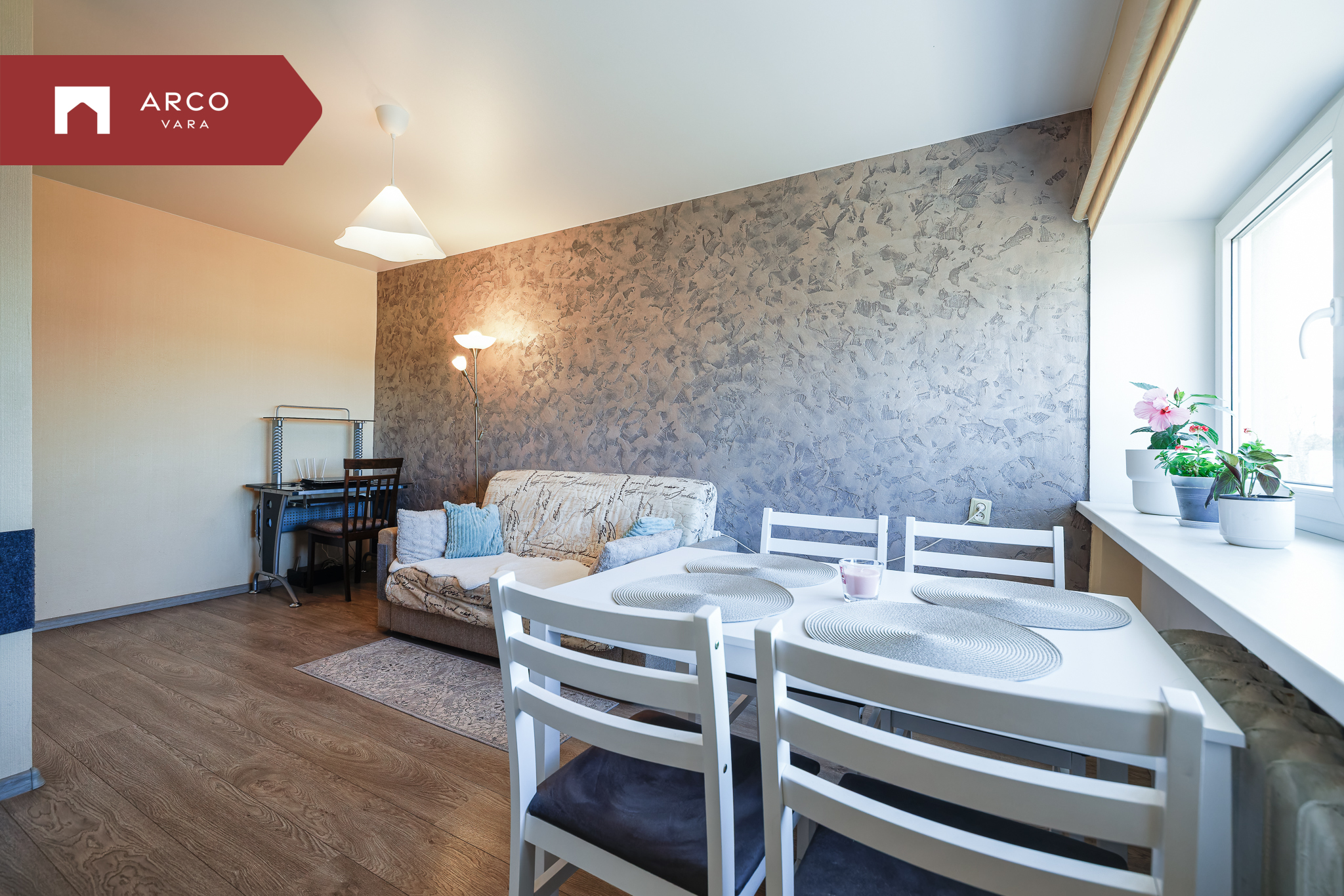 Korteri põrandat katab laminaatparkett. PVC aknad.