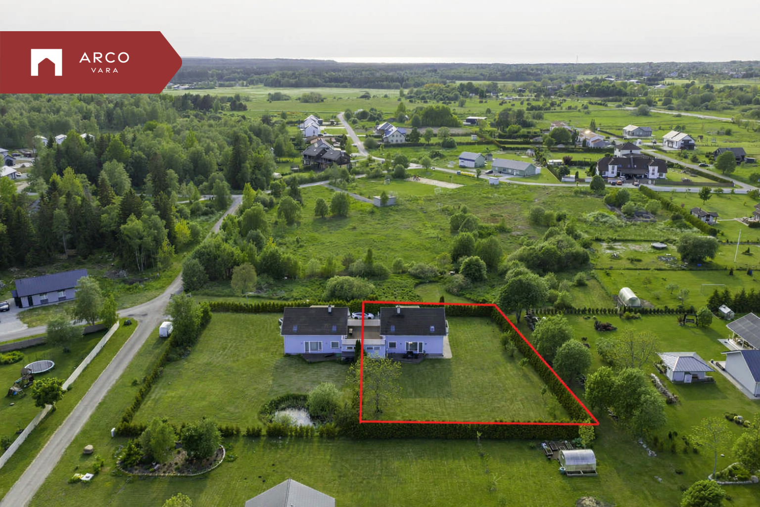 Kinnistu kogupind on 3338 m², millest müüdava boksi isiklik kasutusõigus on ligikaudu 1500 m². Tegemist on hästi hooldatud ja kaunilt haljastatud aiaga, kus privaatsus on maksimaalselt tagatud – kogu boksi ala ümbritseb kõrge elupuuhekk. Kuna tegemist on tagumise boksiga ning kahte boksi eraldavad garaažid, loob see elamisele eramaja sarnase tunde.