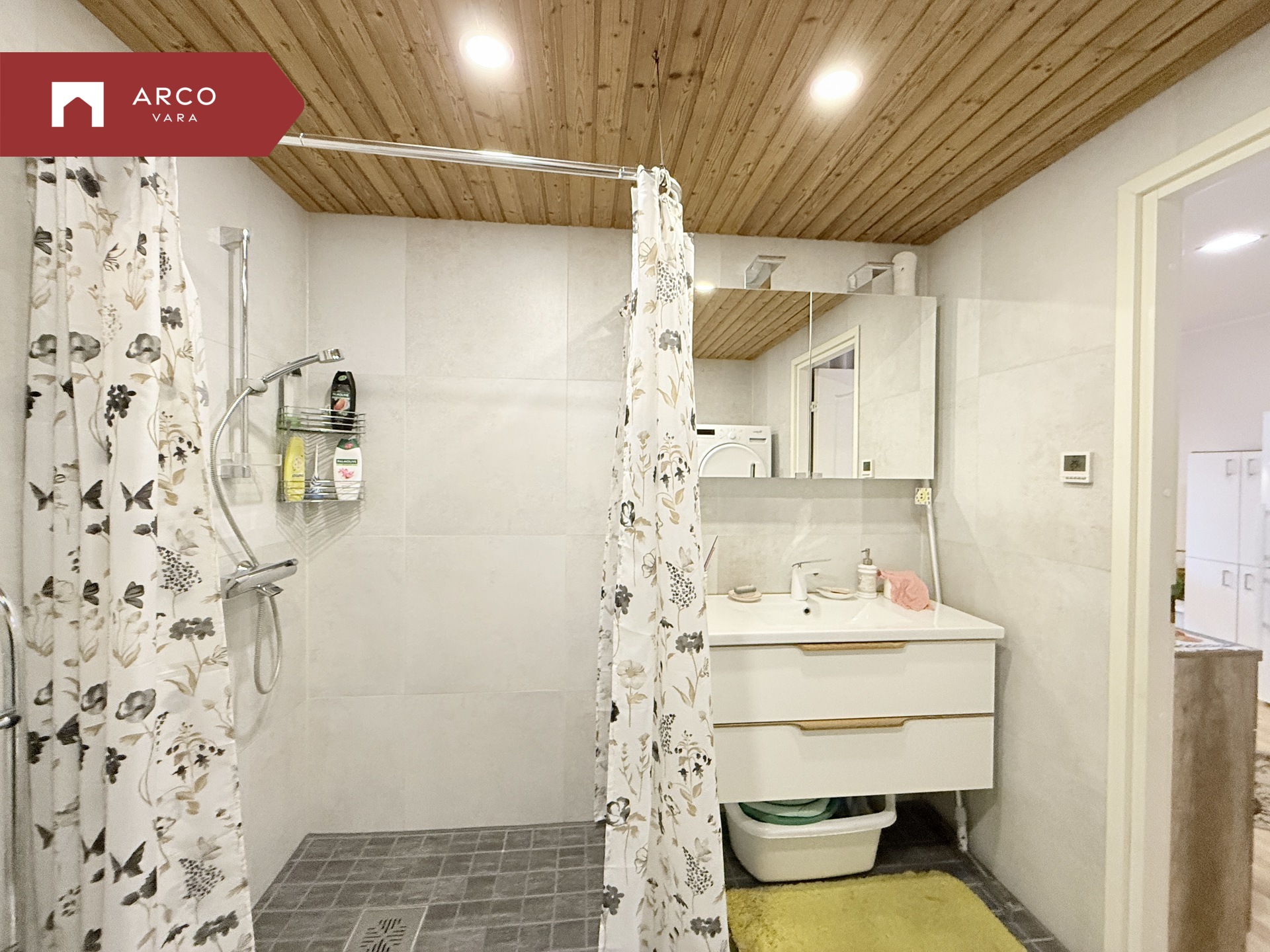 Duširuum ja WC asuvad ühises ruumis.