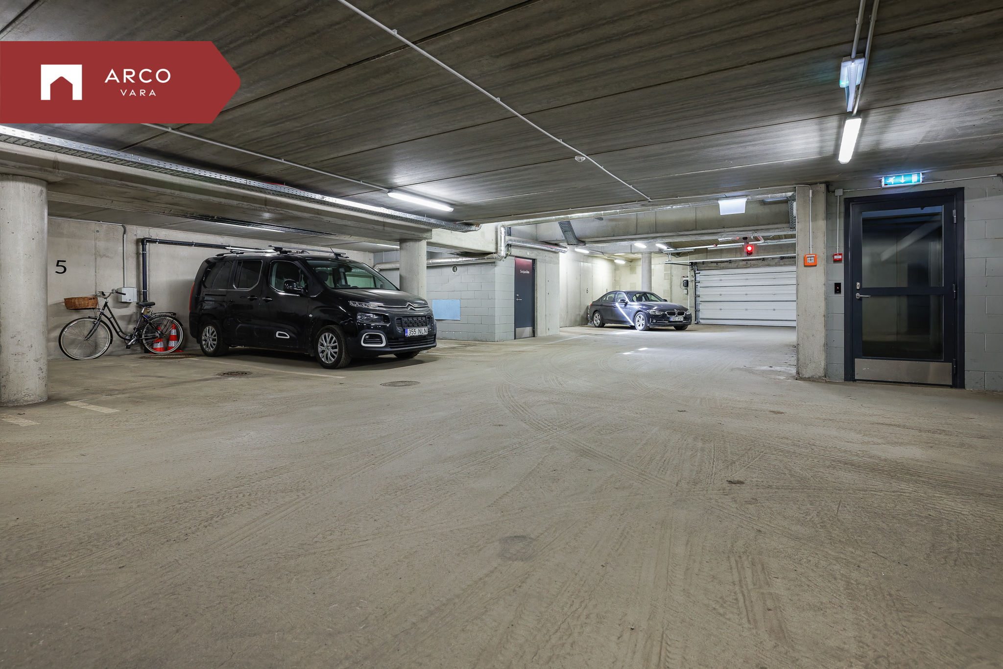 Keldrikorrusel asuvad parkimiskohad ja panipaigad.