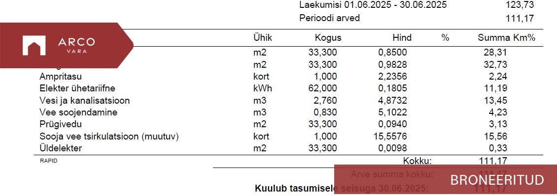 Kommunaalmaksed 100-170 eurot.