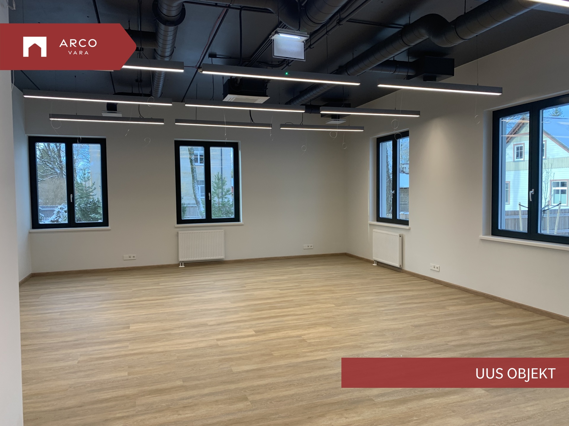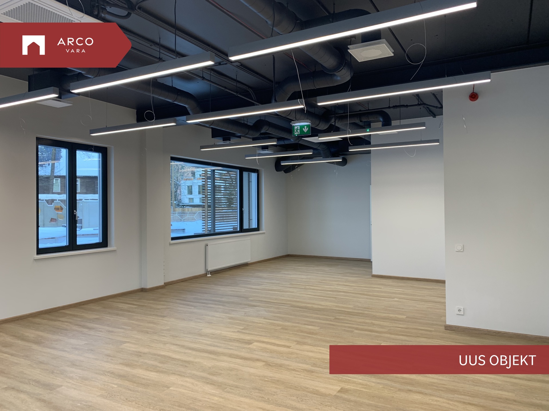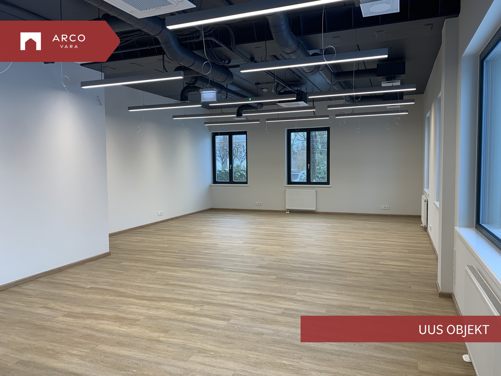 Ruumisesne sundventilatsioon Verso R 1000, 3 laeseadmega Mitsubishi VRF jahutussüsteem, avatavad puitalumiiniumaknad, dimmerdavad LED valgustid opaalklaasiga.