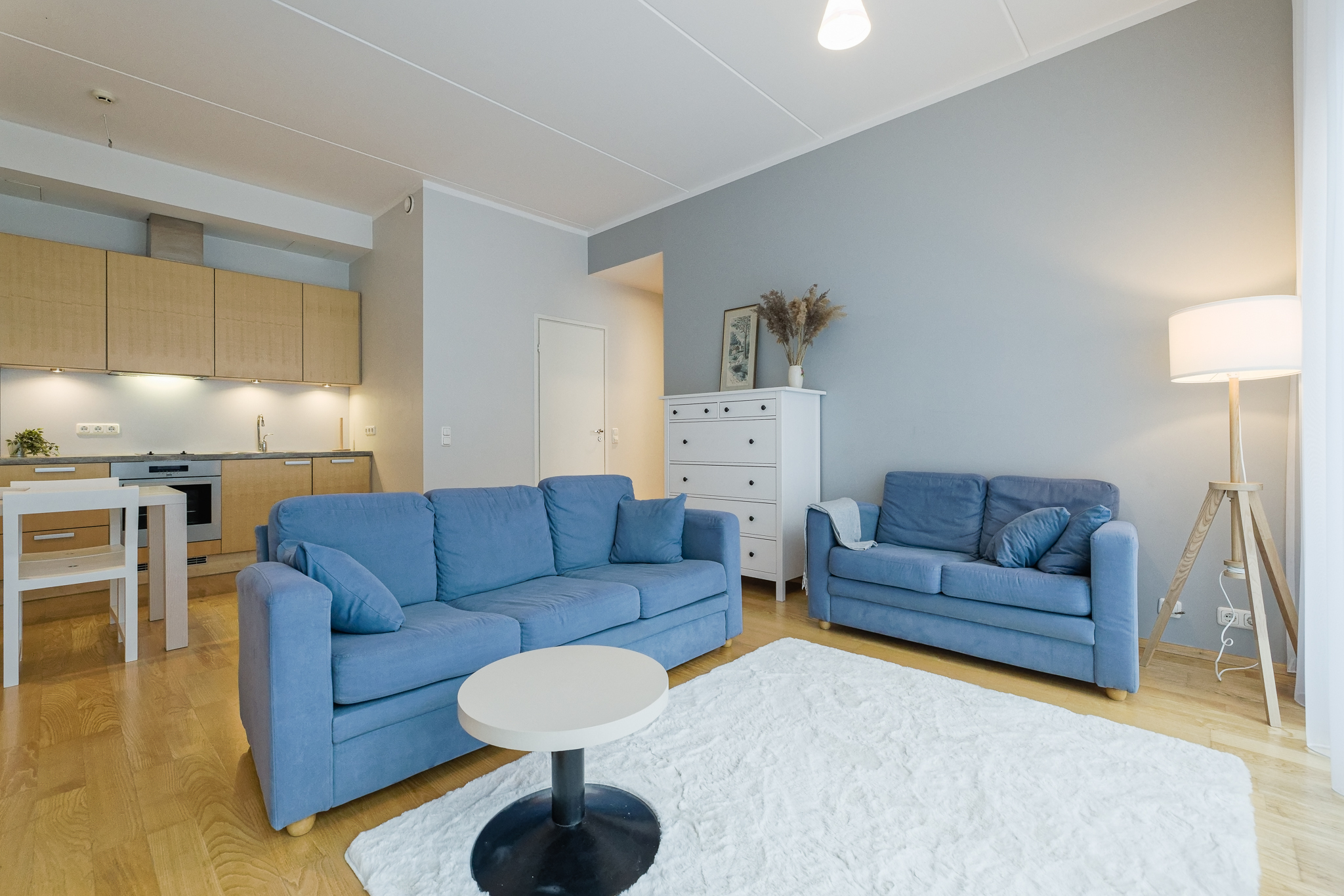 Korteris on valgusküllane elutuba koos avatud köögiga, eraldi magamistuba ning vannituba/WC.