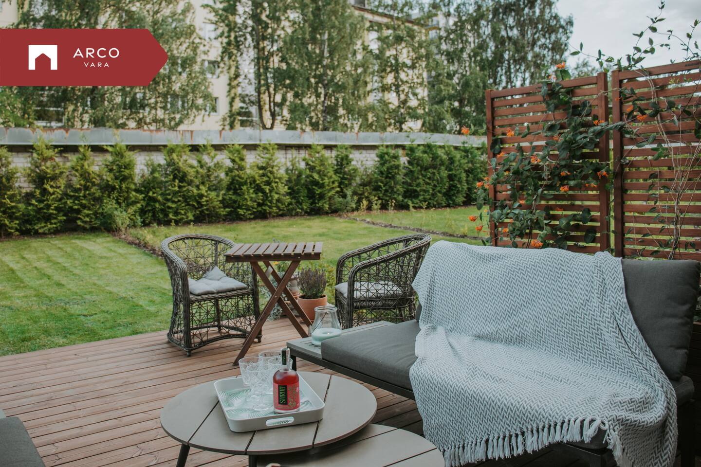 Tänu kõrgetele puudele on tagaaed suveperioodil meeldivalt varjatud ning vastasmaja ei jää otseselt vaatevälja. See loob tunde, justkui oleks tegemist omaette väikese hooviga, mis on linnakeskkonnas haruldane väärtus.