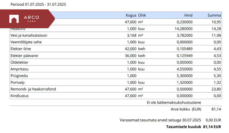 Üürnikul tuleb tasuda: ühe kuu üür, maakleritasu,