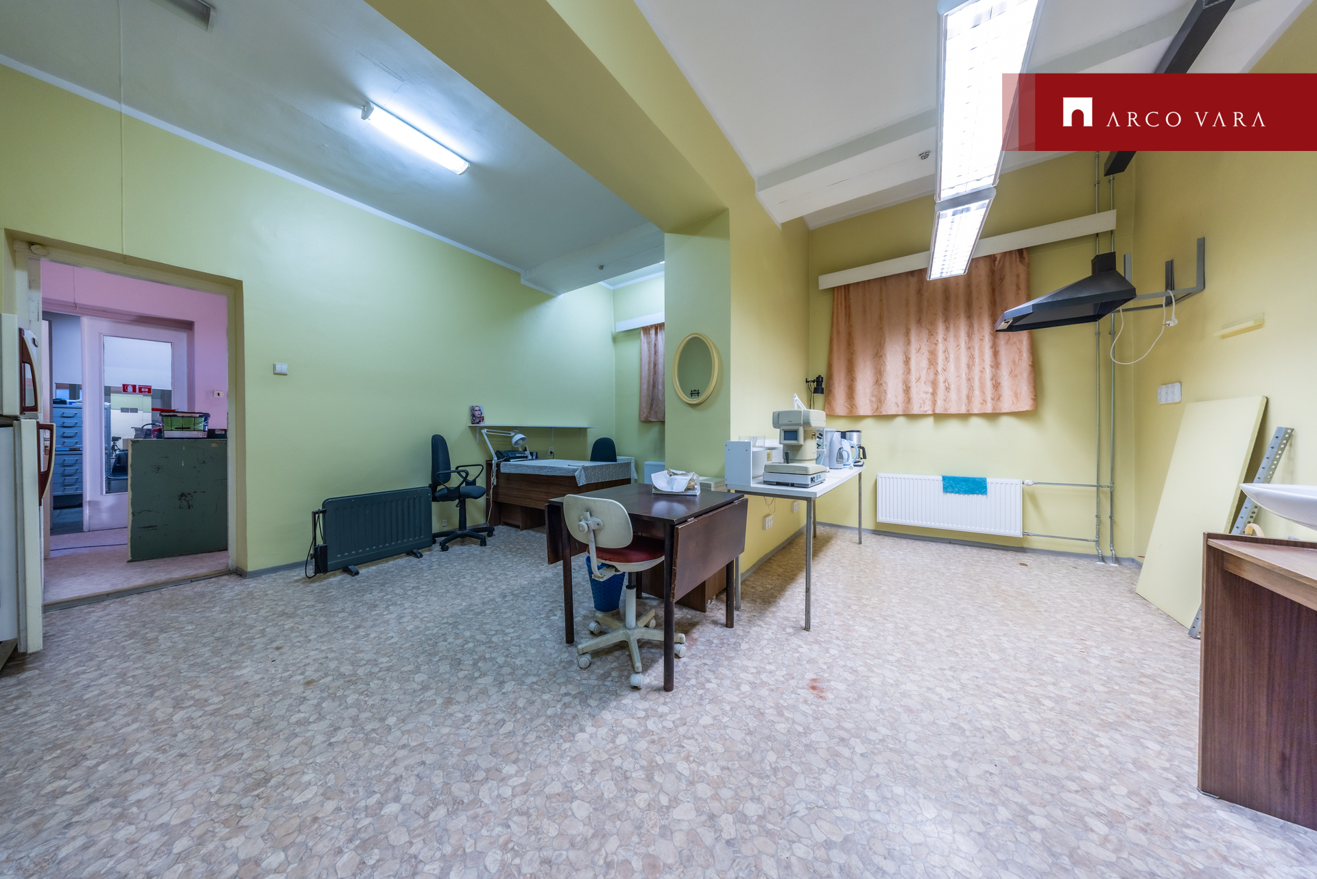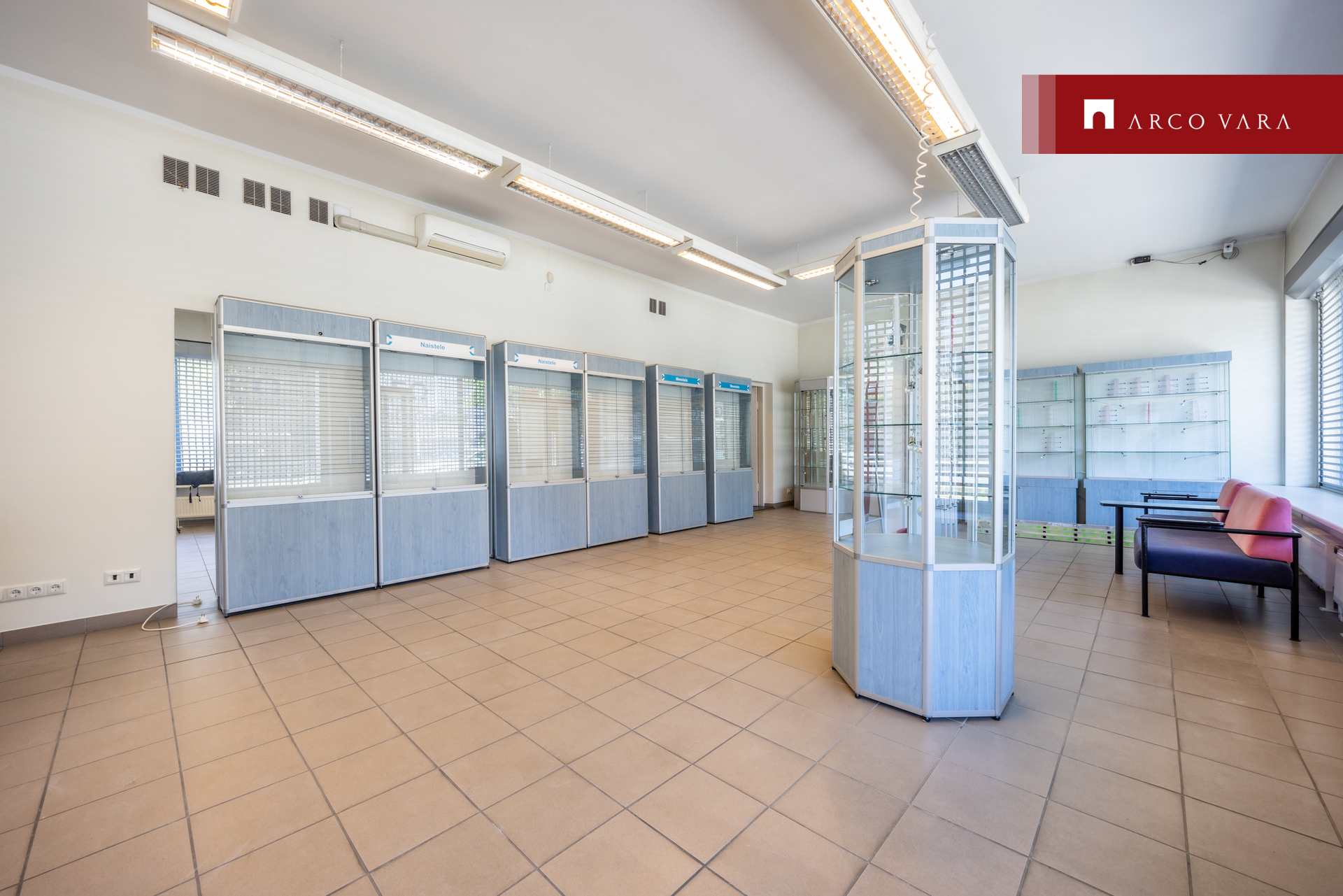 Suurte vitriinakendega esimesel korrusel asub kaubanduspind, kontori- ja teenindusruumid.