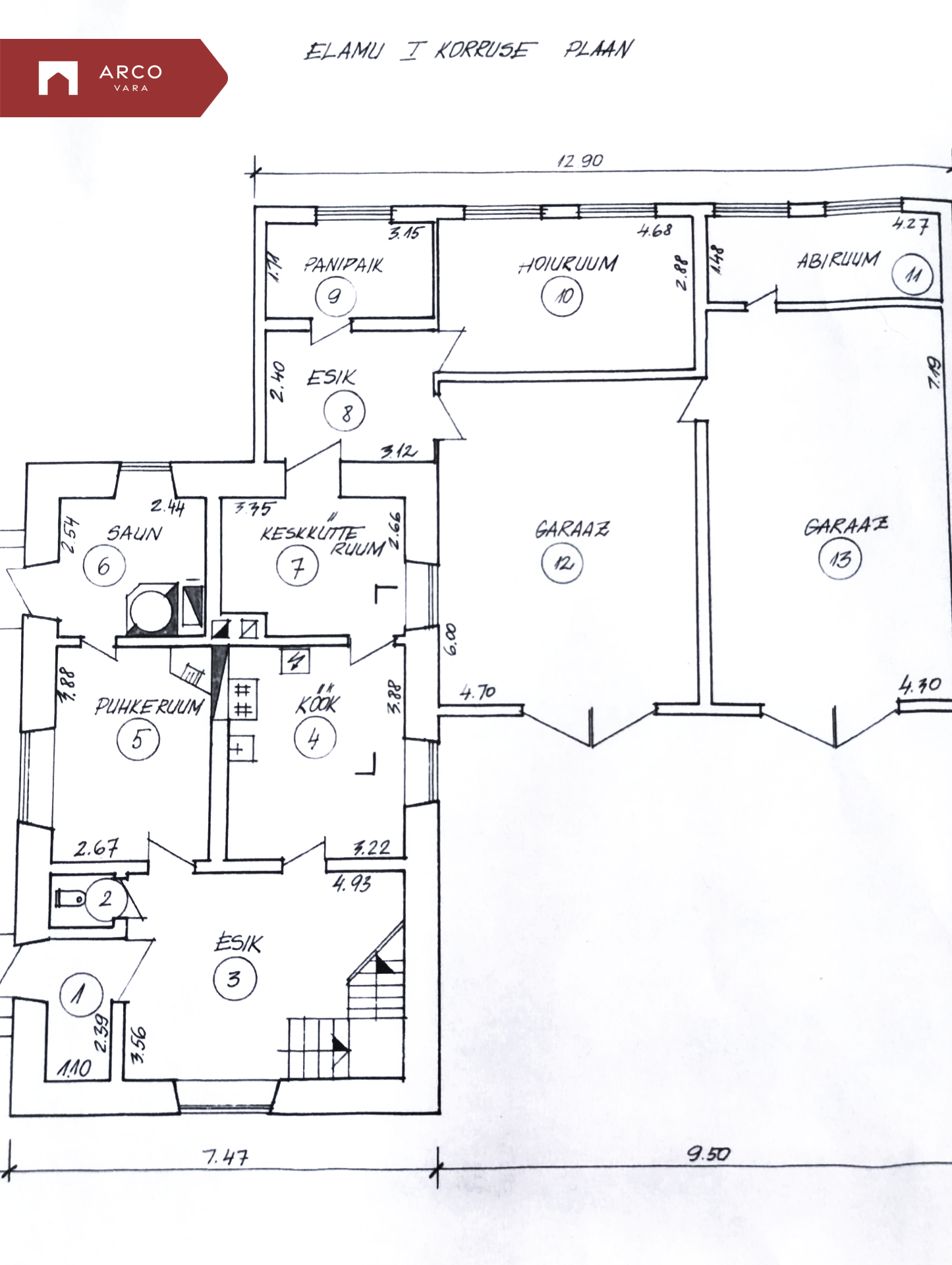 - I korruse üldpind: 147,2 ( koos kütte-, abi- ja hoiuruumidega, sh garaažid)