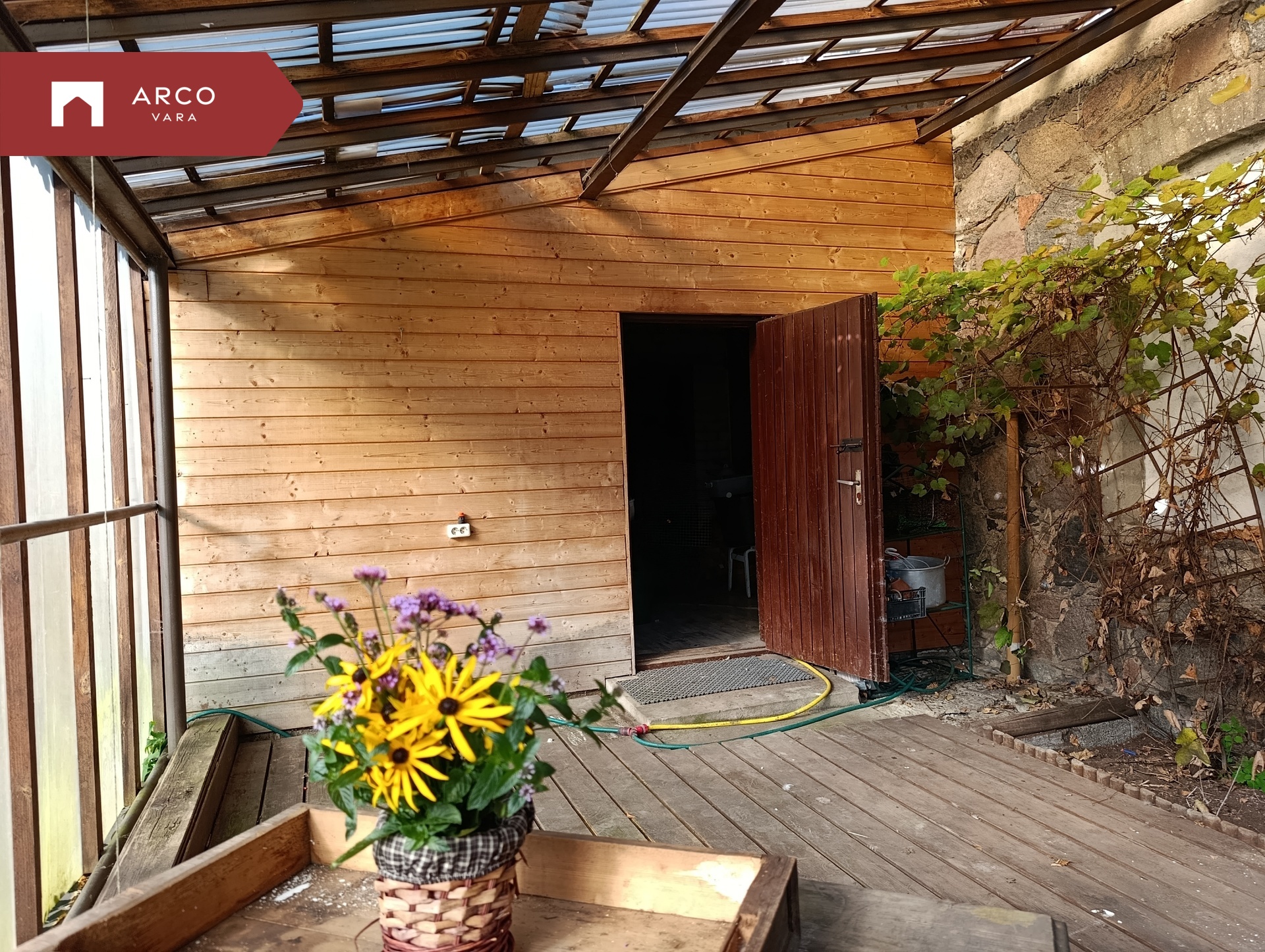 Päikeseküllane ja mõnus istumisnurk- veranda oma ajaloolise kiviseinaga, on ideaalne nt kodumaiste viinamarjade vms kasvatamiseks.