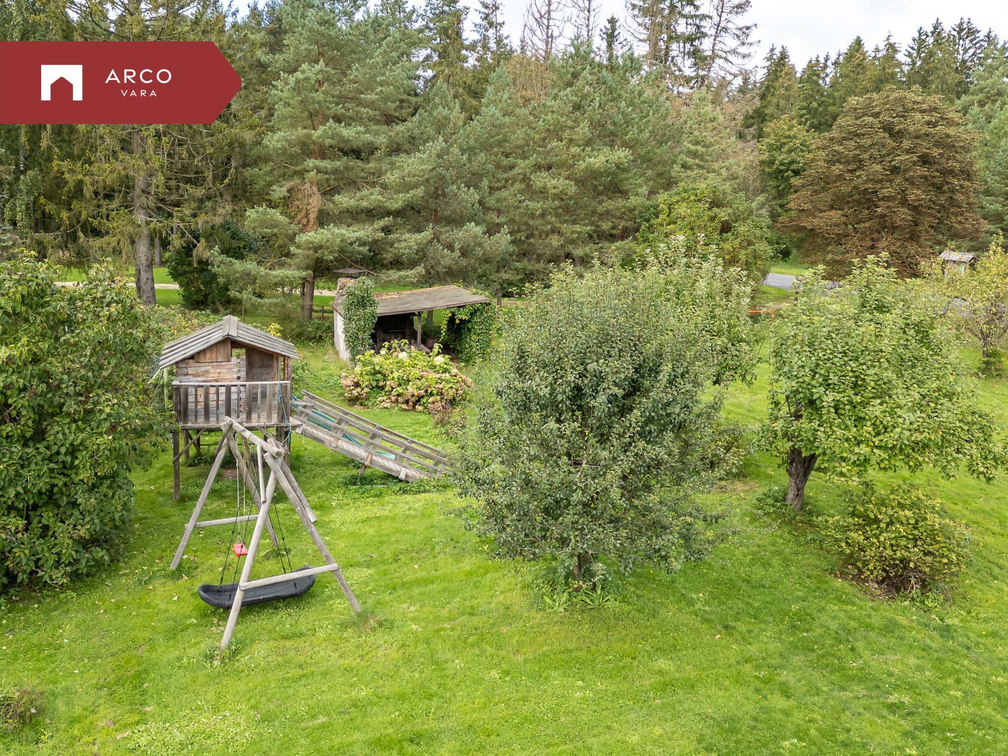 Avaral õuealal asub kamina ja suitsuahjuga grillmaja, viljakandvad viljapuud ja marjapõõsad.