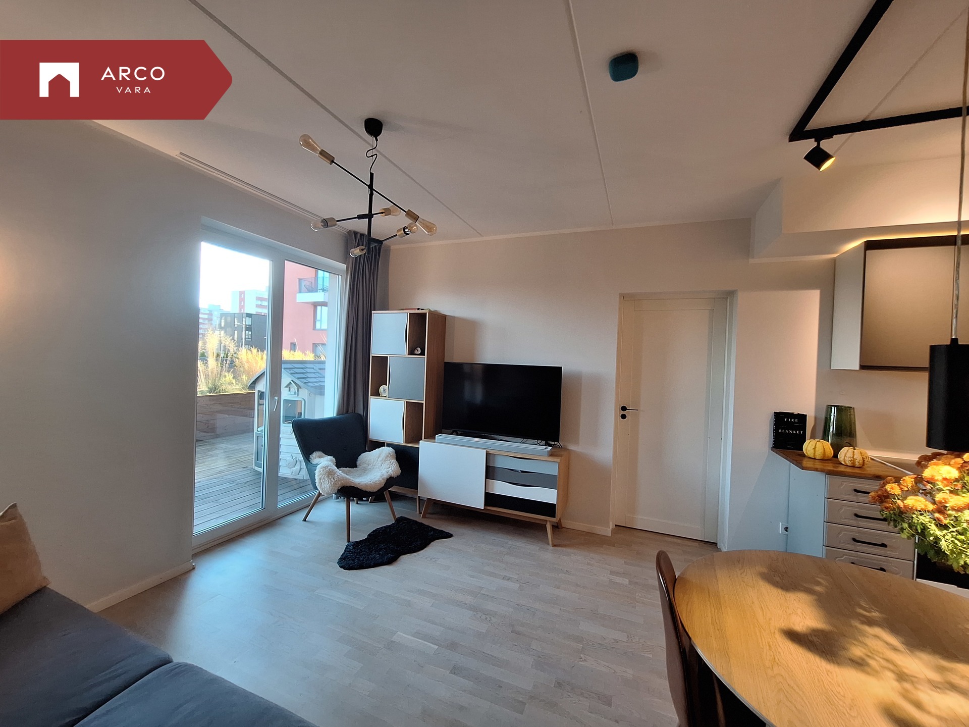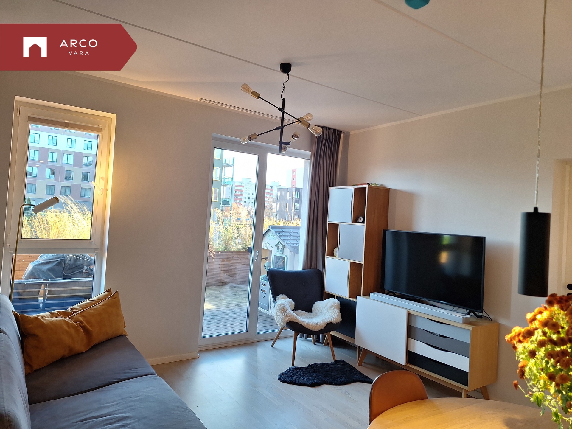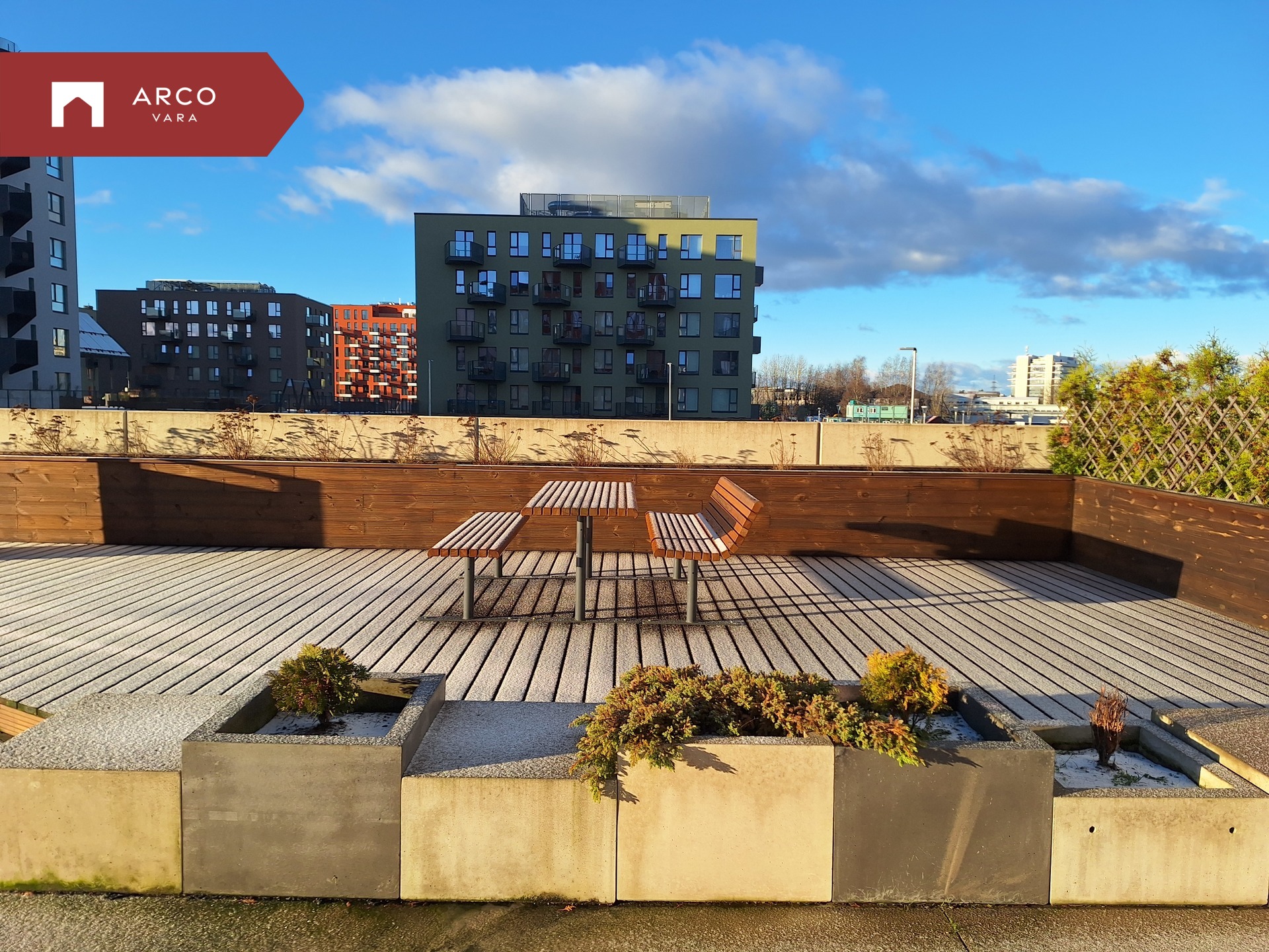 Sooja suvepäeva nautimiseks on korteril 19 m² terrass, kust pääseb mugavalt oma kodu privaatsele õuealale. Kahe maja vahel on eraldi pere puhkeala: laste mänguväljak, grillimisala, lamamistoolid ja lauaga istumisnurk – ideaalne koht nii perega lõõgastumiseks kui ka sõpradega mõnusaks kokkusaamiseks.