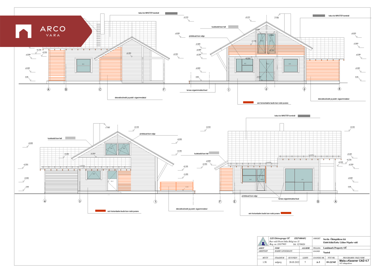 - ehitusealune pind 148,2 m2 (Arhitekt Harry Lindemann)