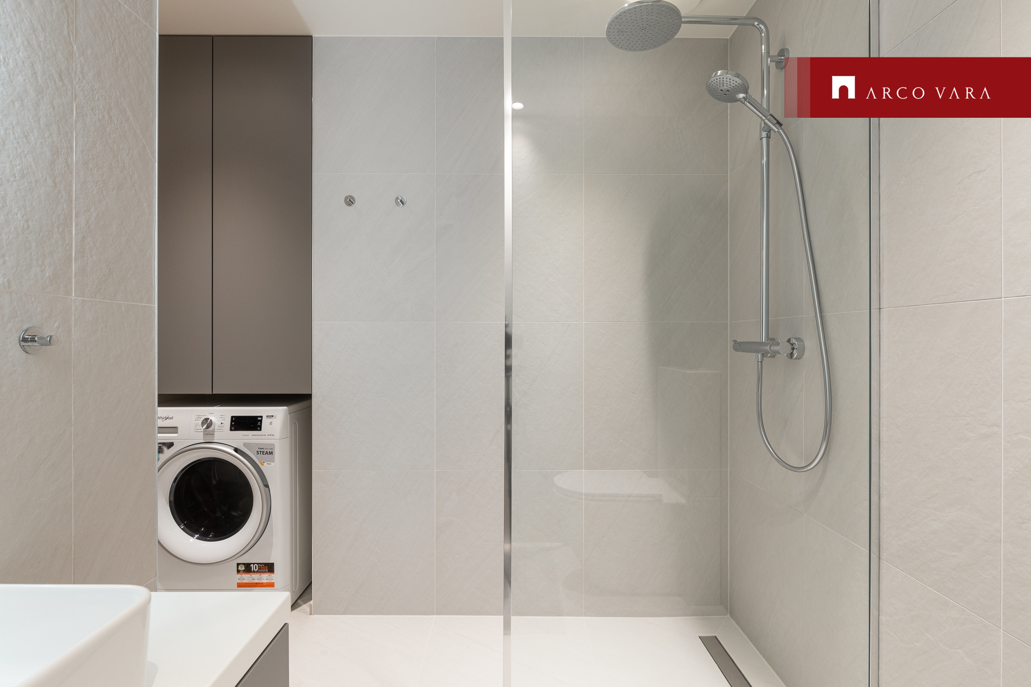 В левой части квартиры находится просторная ванная комната с туалетом. За ванной находится красивая спальня с отдельным гардеробом.
