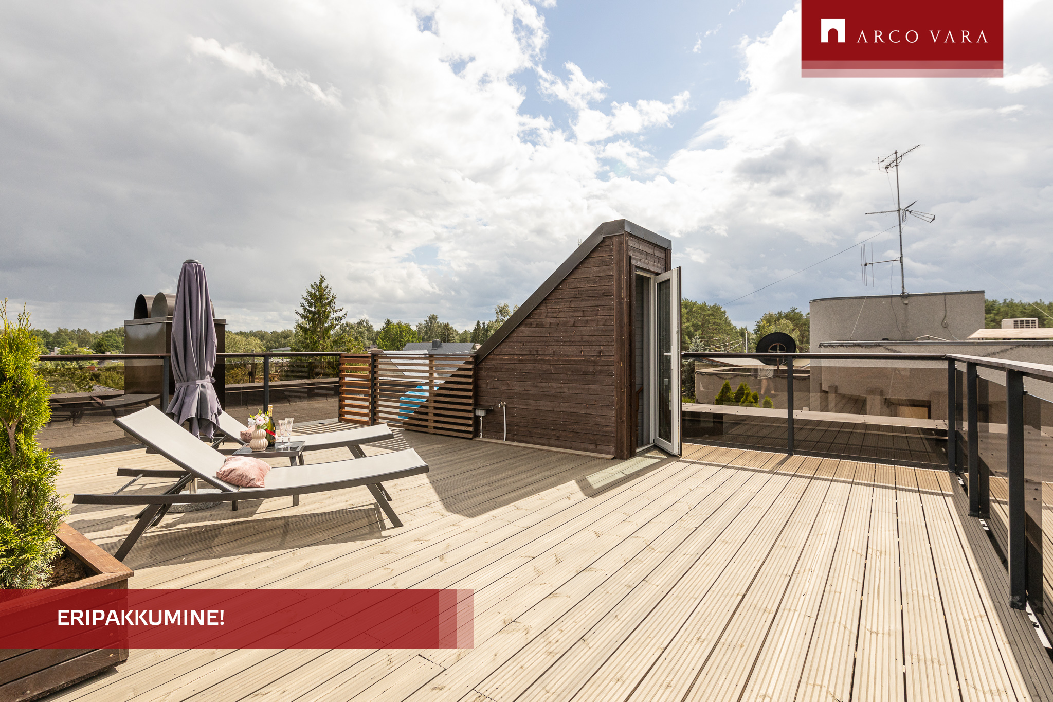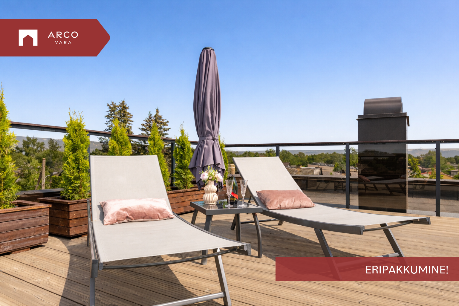 Lisaks on 50 m² katuseterrass, kus nautida päikeselisi päevi täielikus privaatsuses.