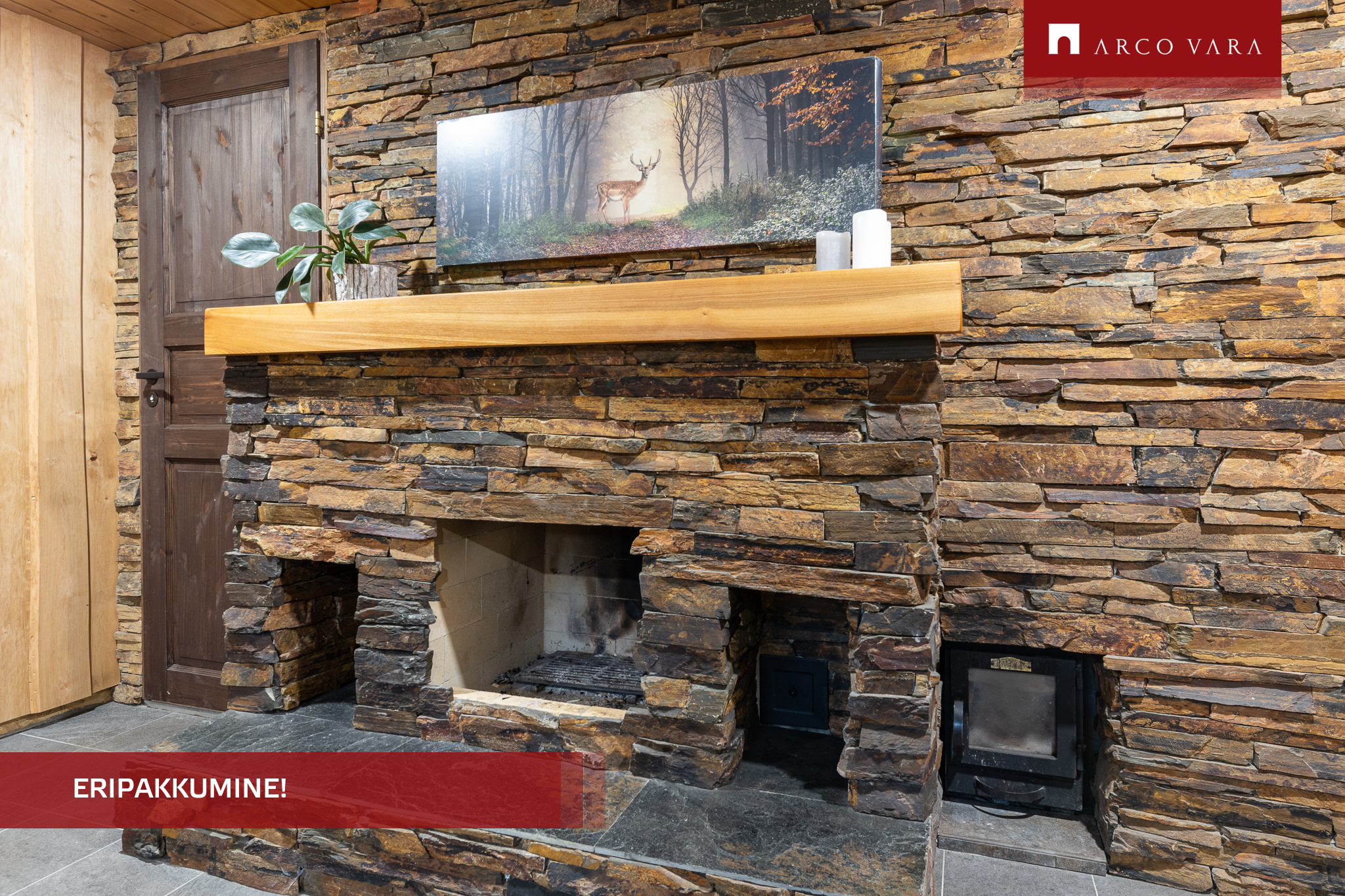 Kamin elutoas ja sauna eesruumis