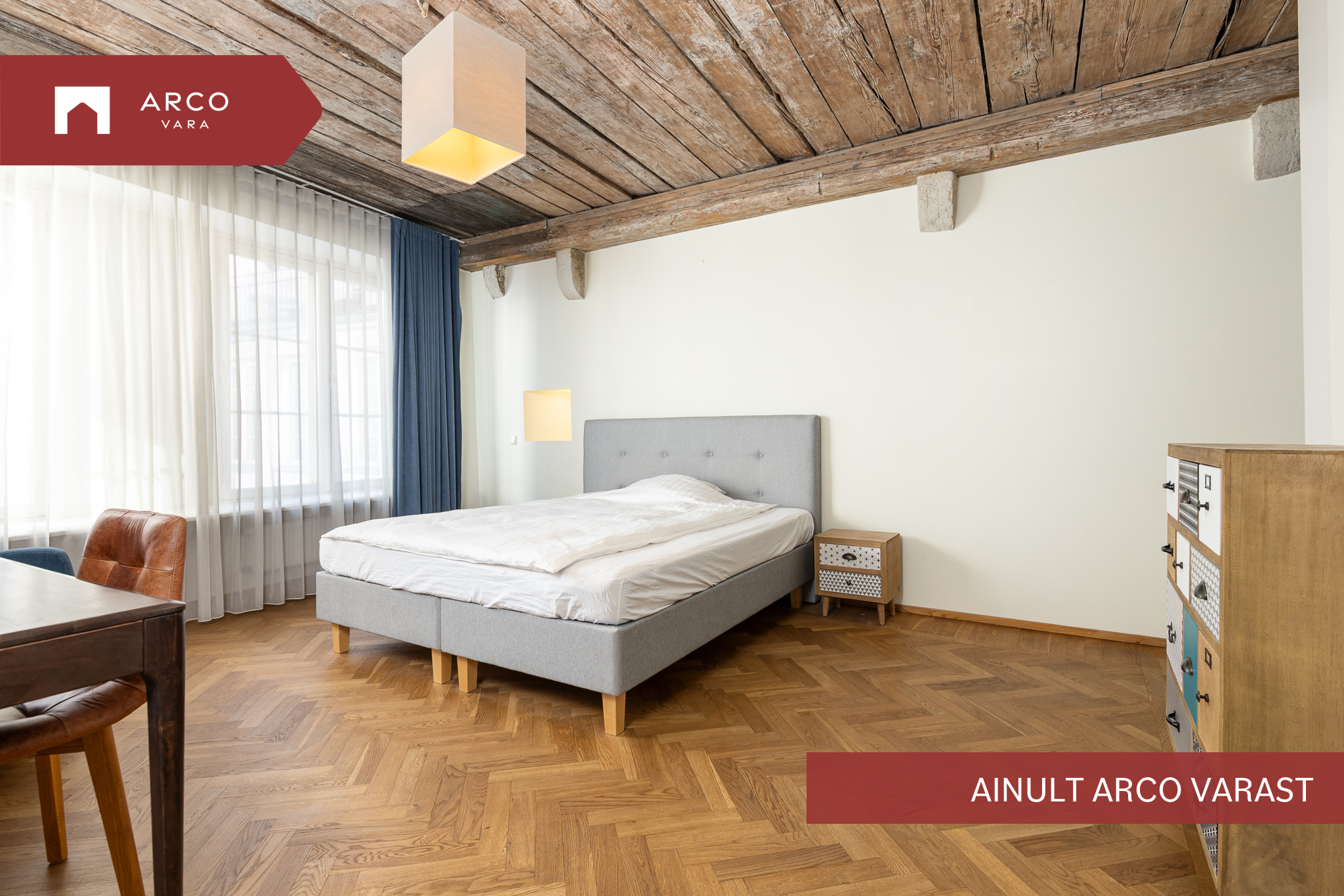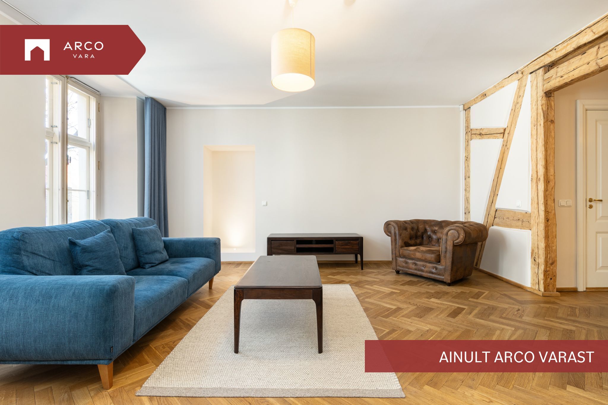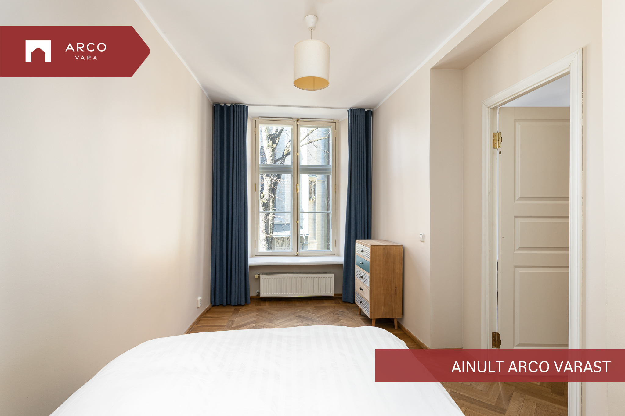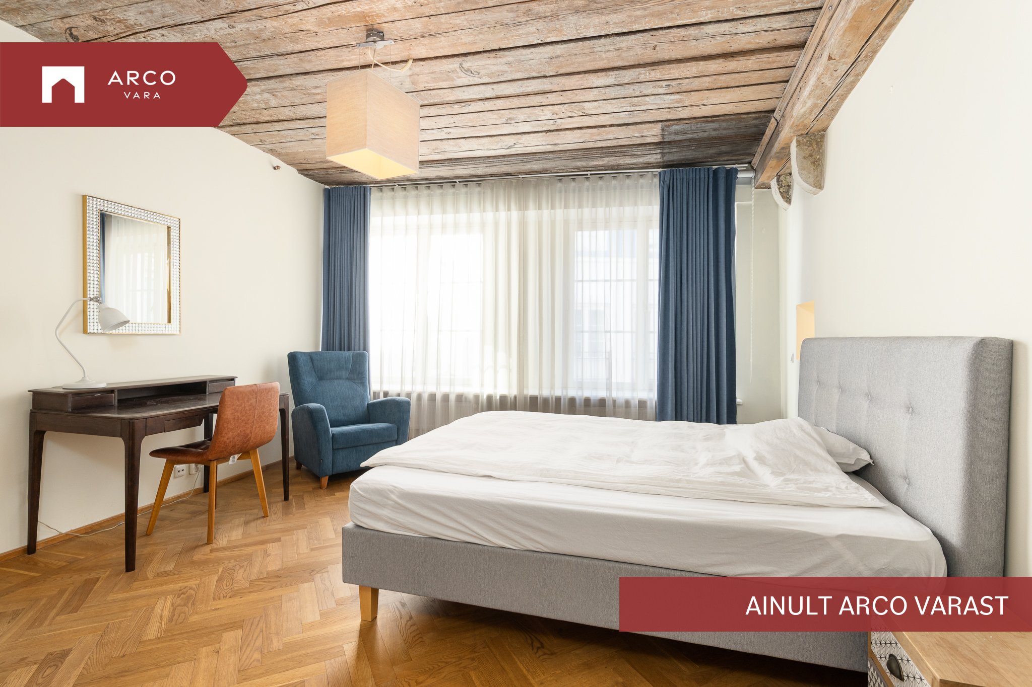 Квартира в старом городе с видом на церковь Олевисте расположена в тщательно отремонтированном доме. В просторной гостиной есть камин, который придаёт квартире уют. Спальни не проходные, кухня объединена с гостиной, ванная комната / туалет и гостевой туалет.