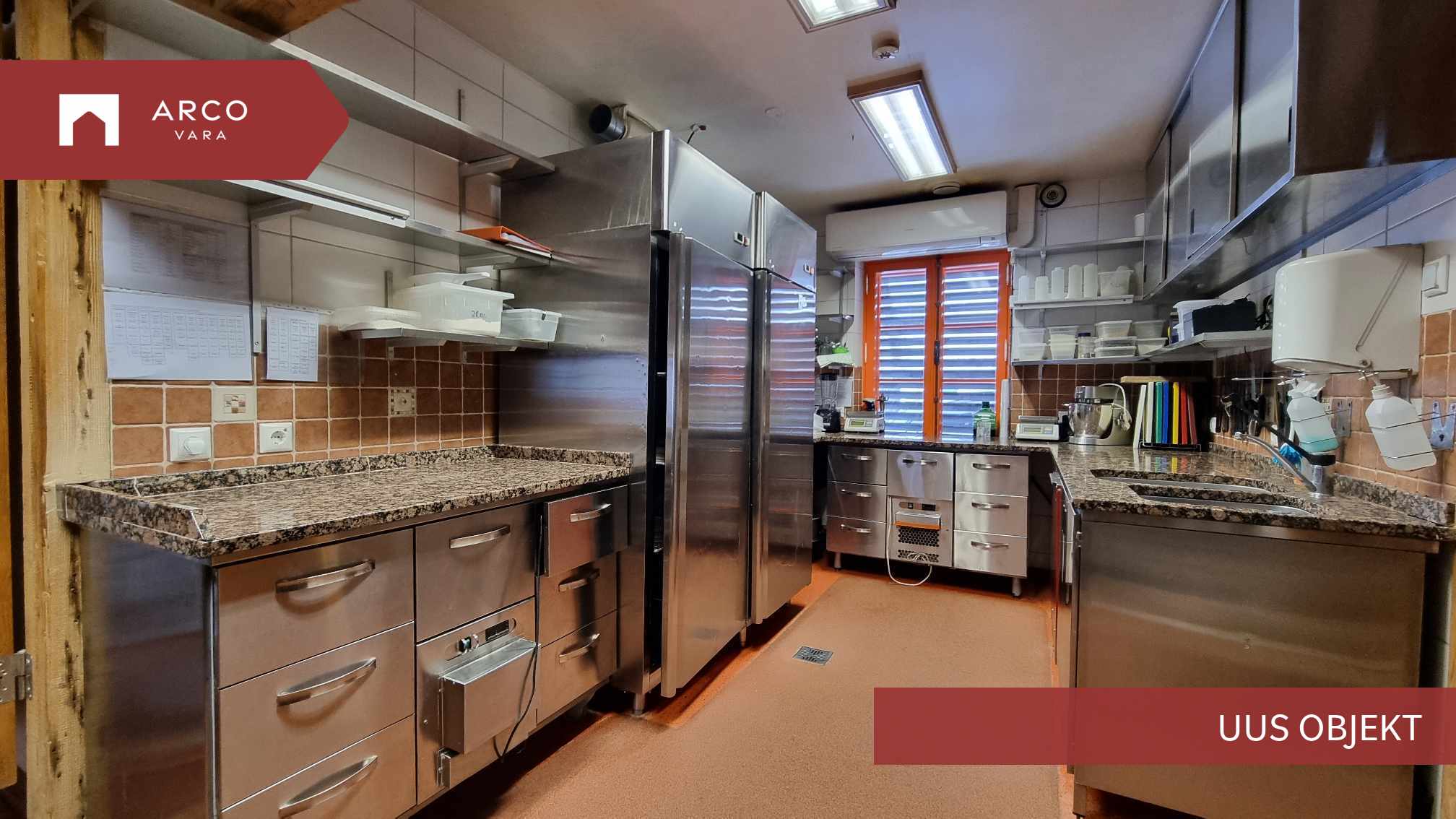 Kõik riiulid ja kapid roostevabad, töötasapinnad graniit