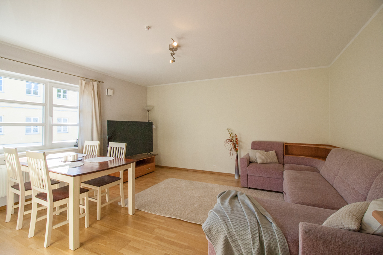 Korteri läbi maja planeering tagab loomuliku valguse kogu päeva vältel – hommikupäike paistab ühte ja õhtupäike teise tuppa, luues hubase ja õdusa atmosfääri.