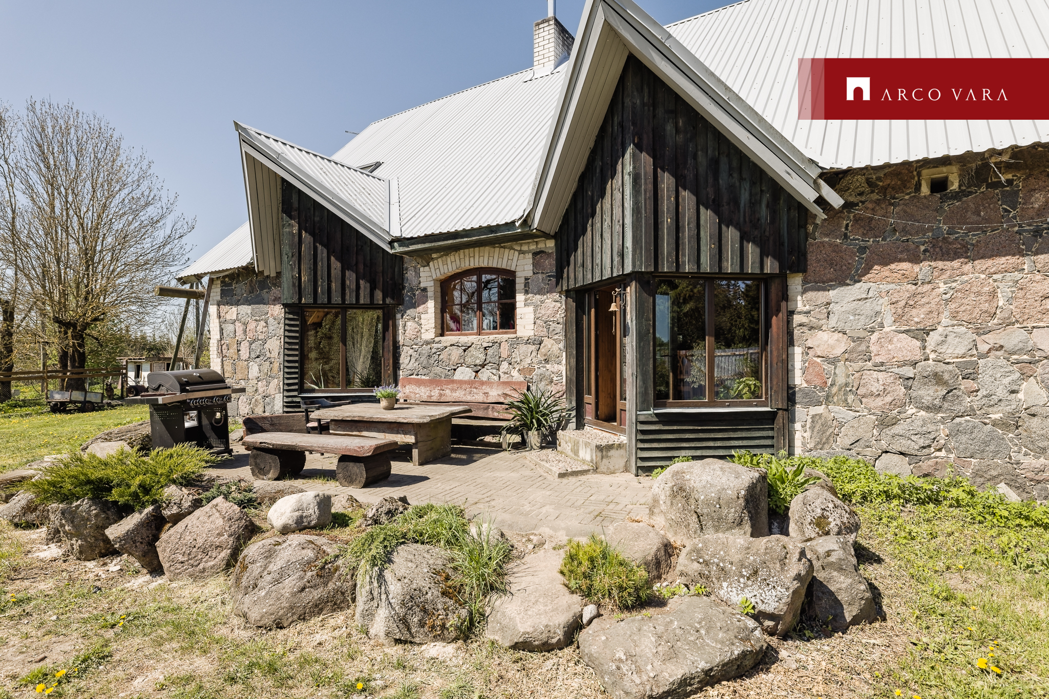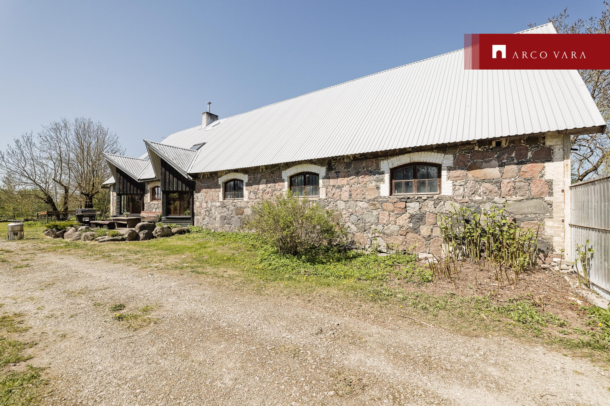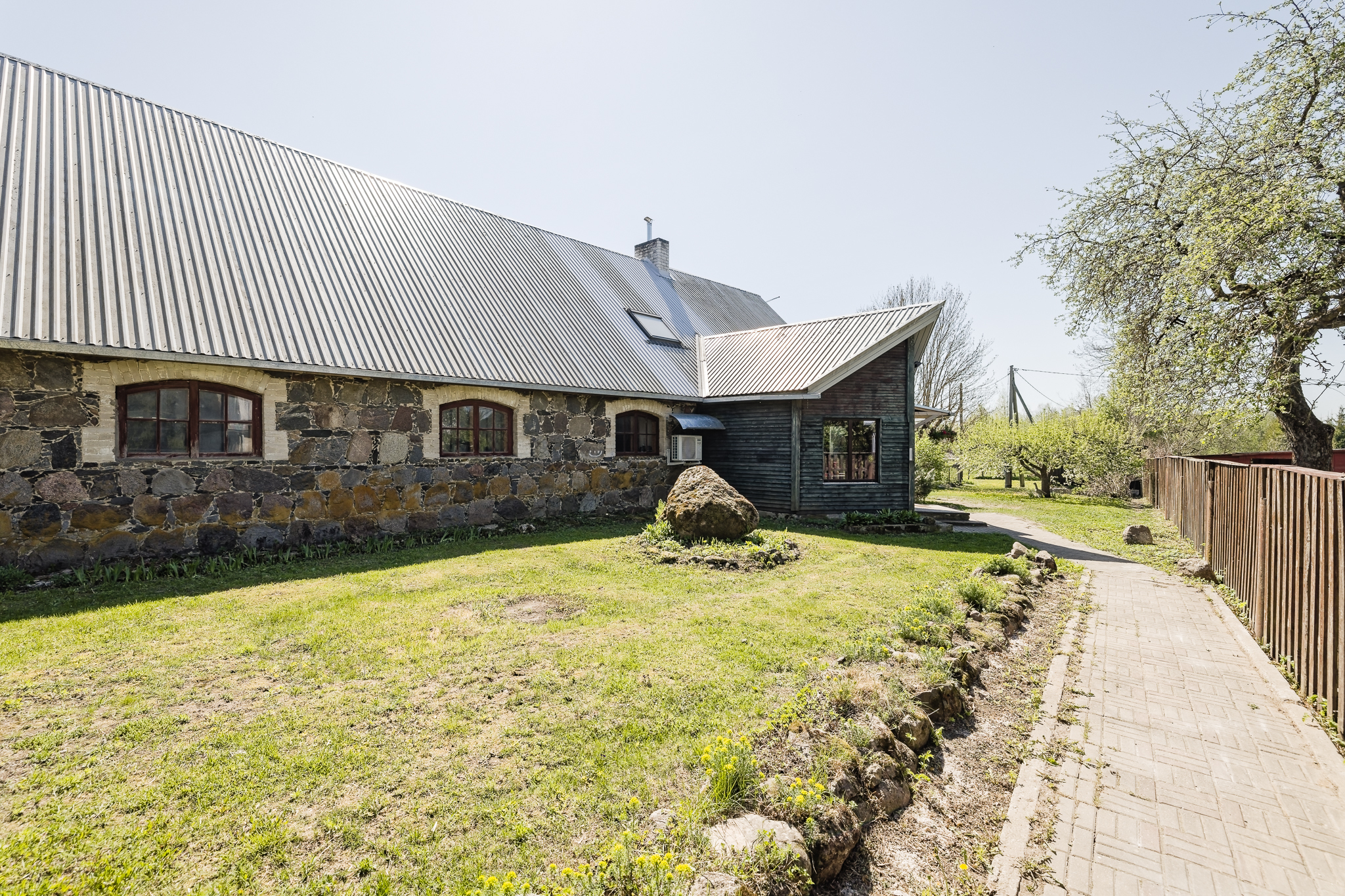 For sale, a large stone house (177m2) with a large plot (5521m2) with side buildings: a barbecue house with a smokehouse, a large utility room (88m2).