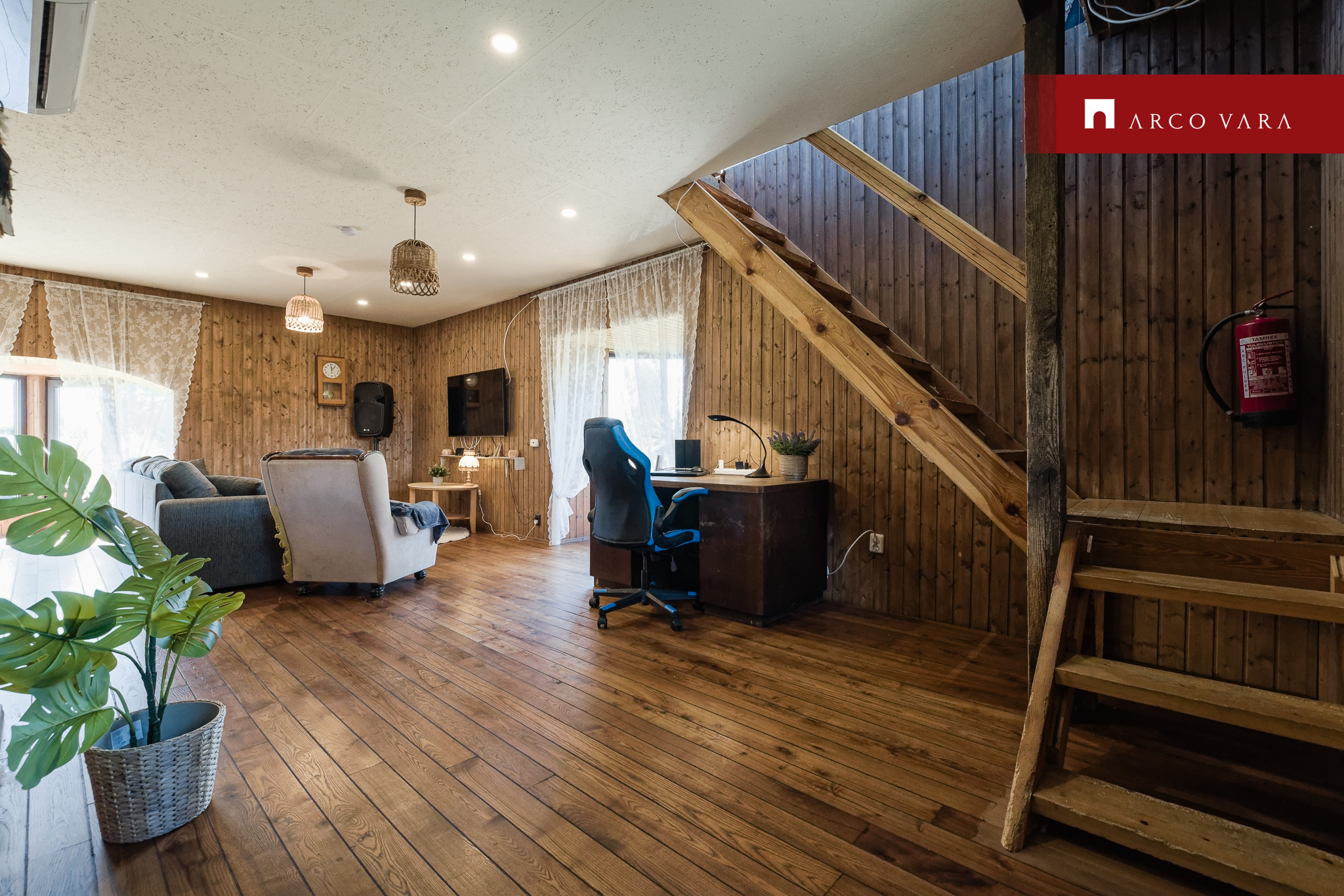 - a large living room with a fireplace of 30.8m2, from which you can access the second floor