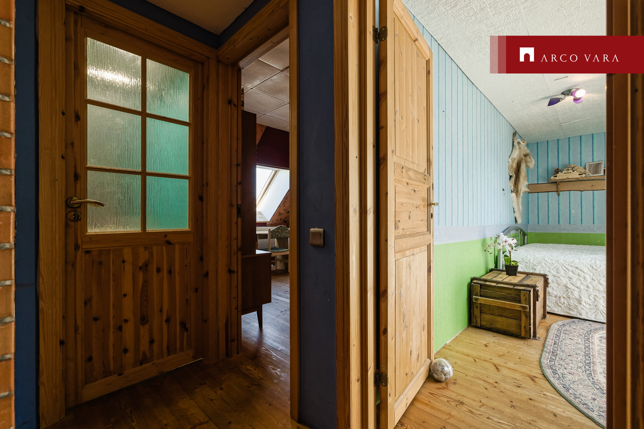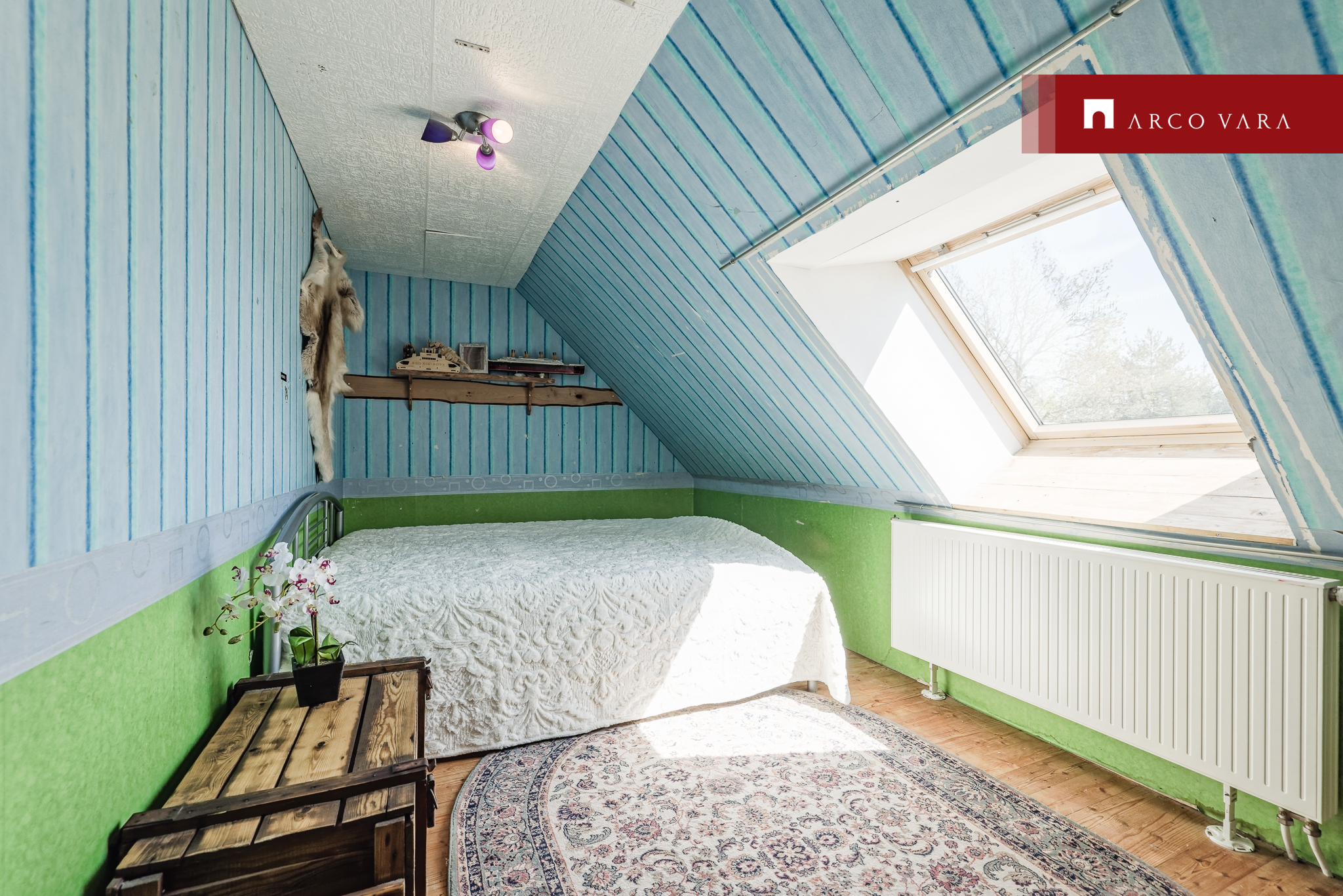 Due to the age and character of the building, the ceiling of the 2nd floor has a slope due to the pitched roof and the rooms have skywindows.