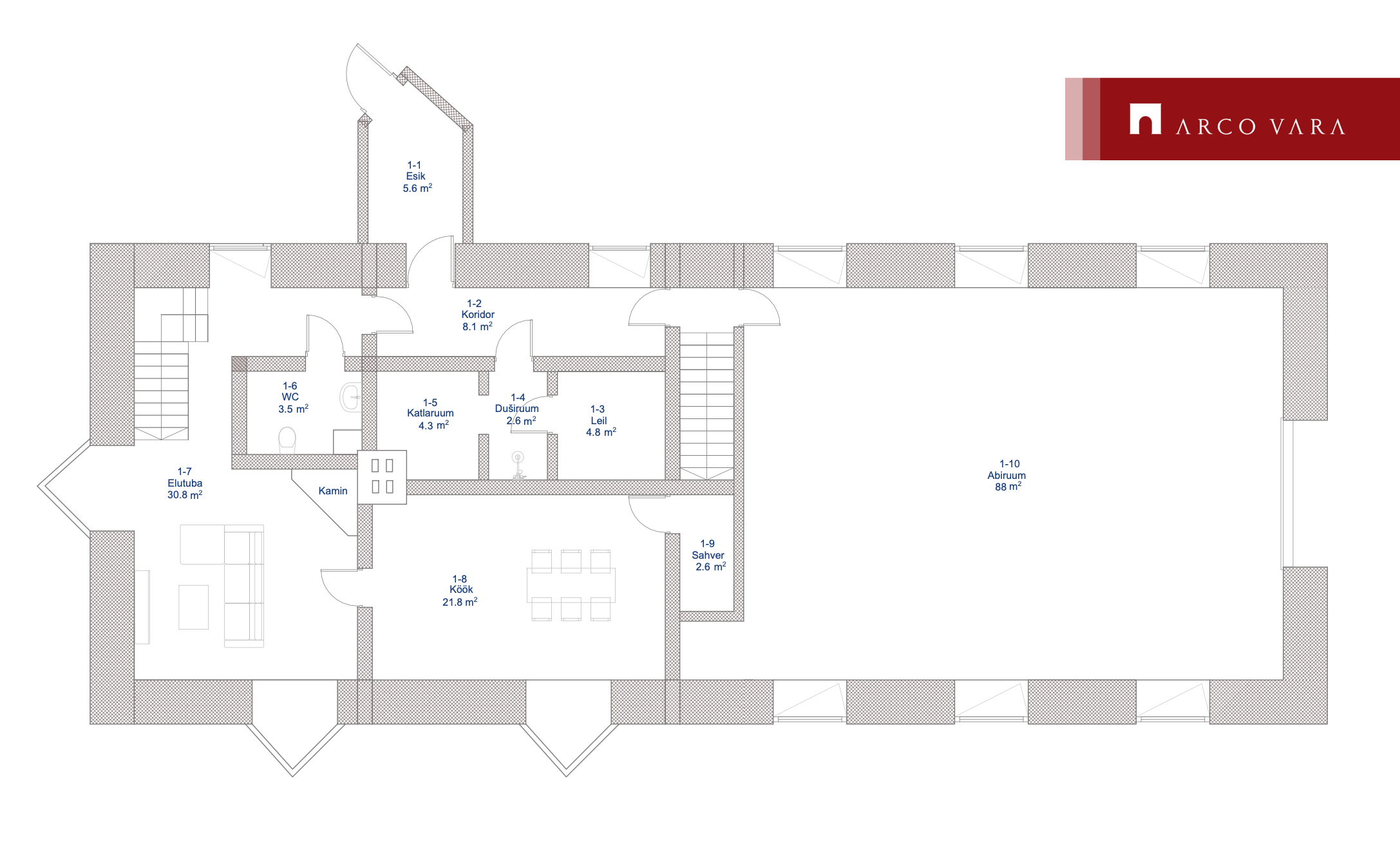 - the area above the garage (88m2) is currently undeveloped.
